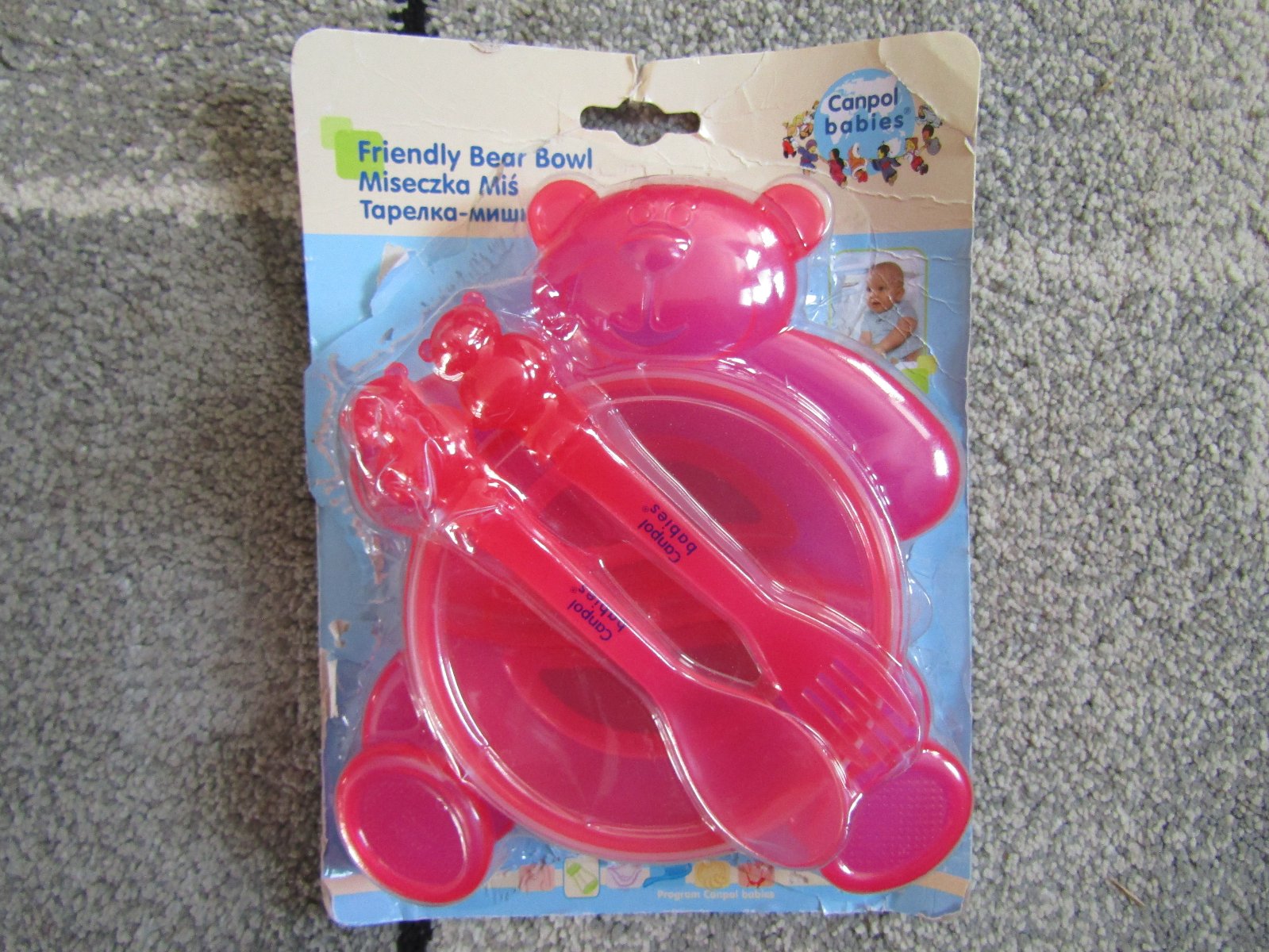 plastová miska s příborem-nové,má protiskluzové dno a víčko,porušený obal-viz.foto+ poštovné -80 kč-balíkovna.