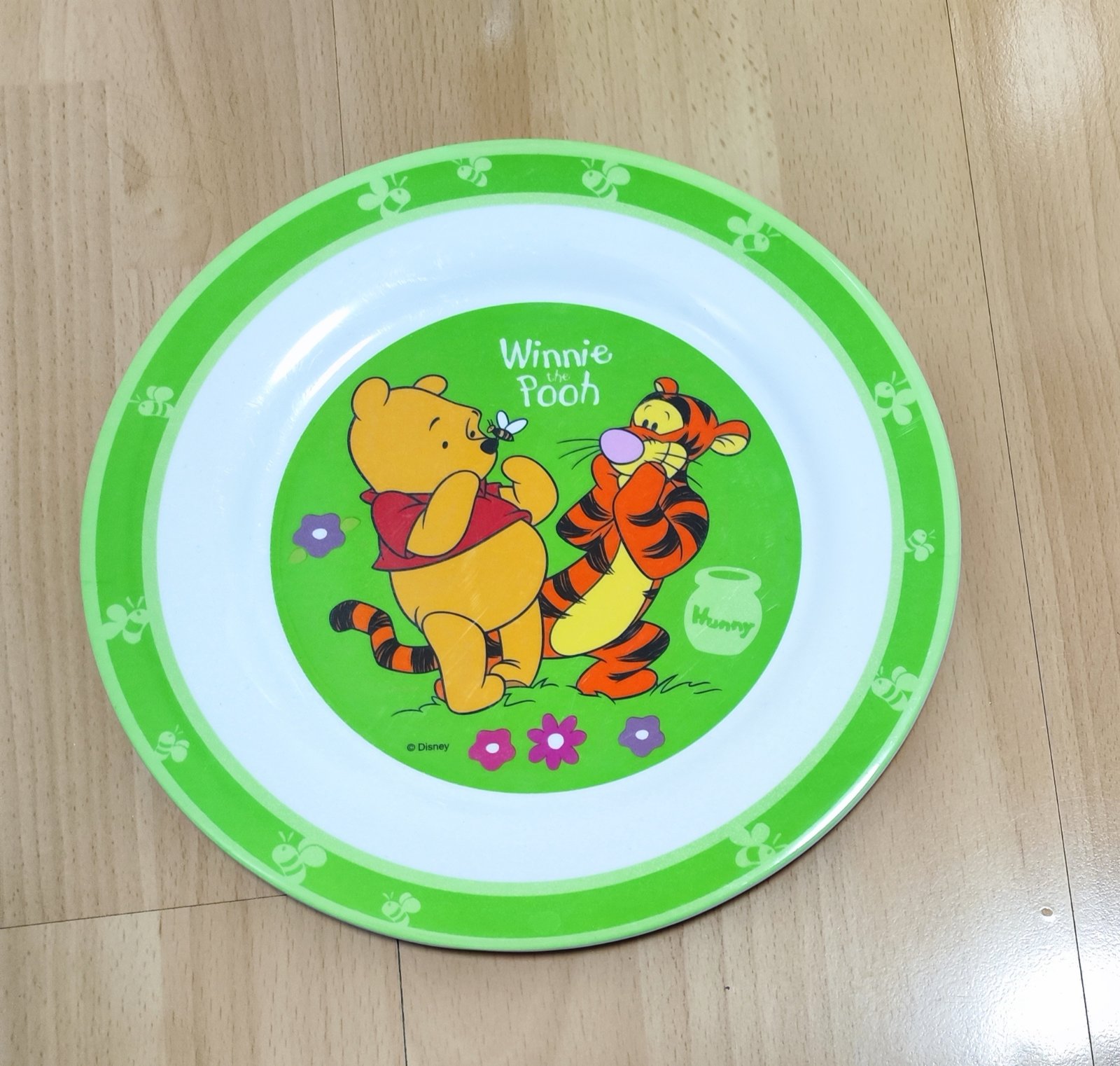 Prodám 6 kusů dětského nádobí – 2 x dělený talíř s motivem podmořského světa – má tři oddělené sekce, ideální pro servírování různých druhů jídla bez míchání. Průměr cca 21 cm. 1 x talíř s motivem medvídka Pú a jeho kamaráda Tygra, průměr cca 25 cm. 1 x talíř s ilustrací žirafy – ručně malované, průměr cca 19 cm. 1 x kelímek s pohádkovým motivem, výška 14, 5 cm. 1 x láhev s motivem Mimoně, výška 19, 5 cm. Cena za vše 120 Kč, v Brně možné osobní předání.