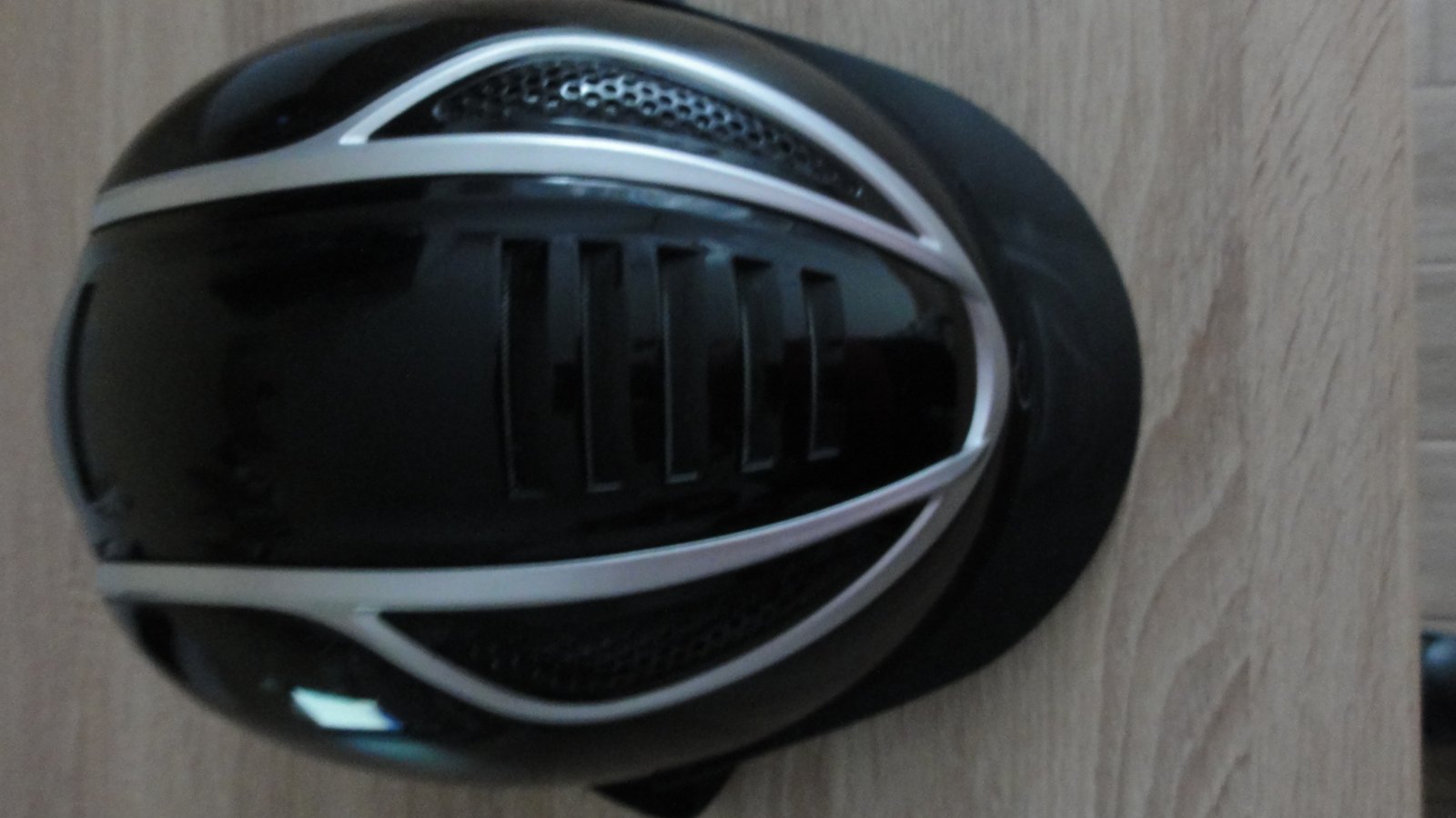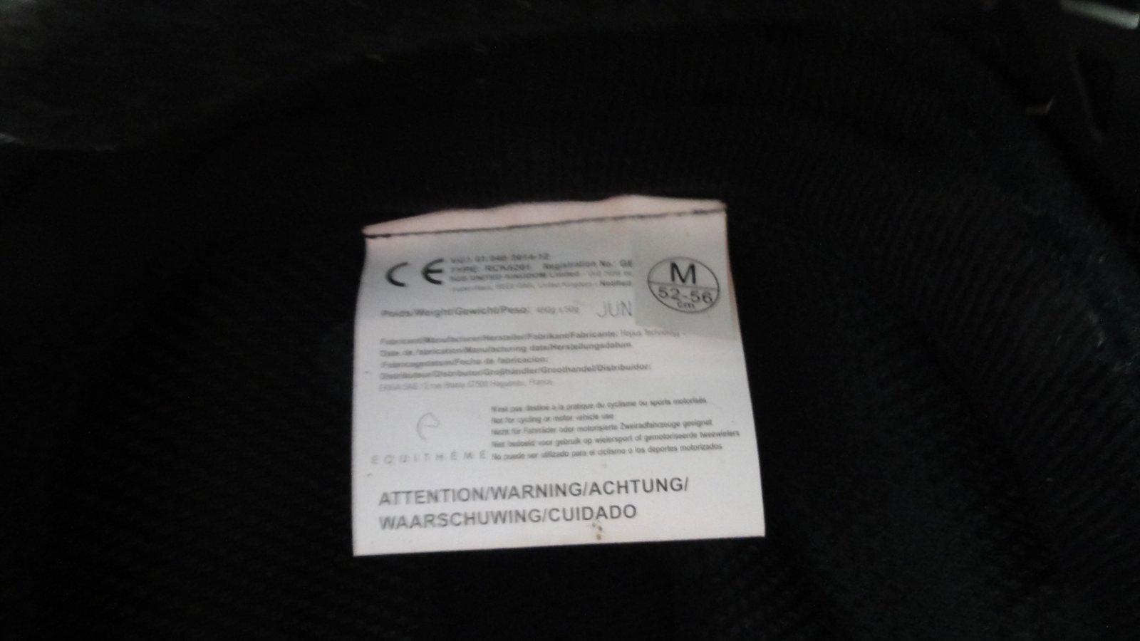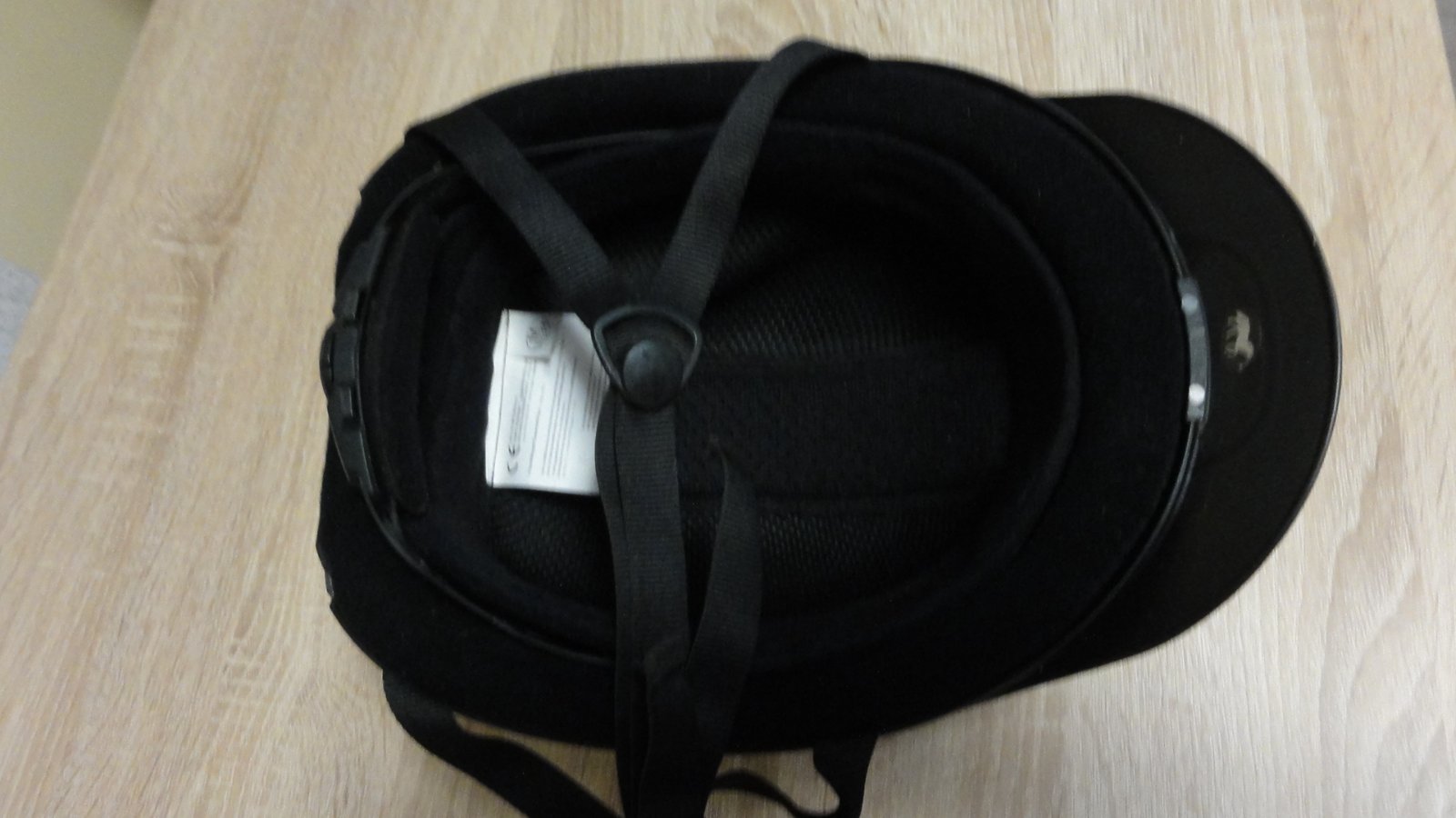 Dětská jezdecká helma velikost M/52 - 56 cm / s třpytivým pruhem uprostřed. Helma má po stranách větrání, které zajišťuje cirkulaci vzduchu. V zadní straně má stahovací kolečko, helmu lze tedy maximálně přizpůsobit dle dané potřeby.