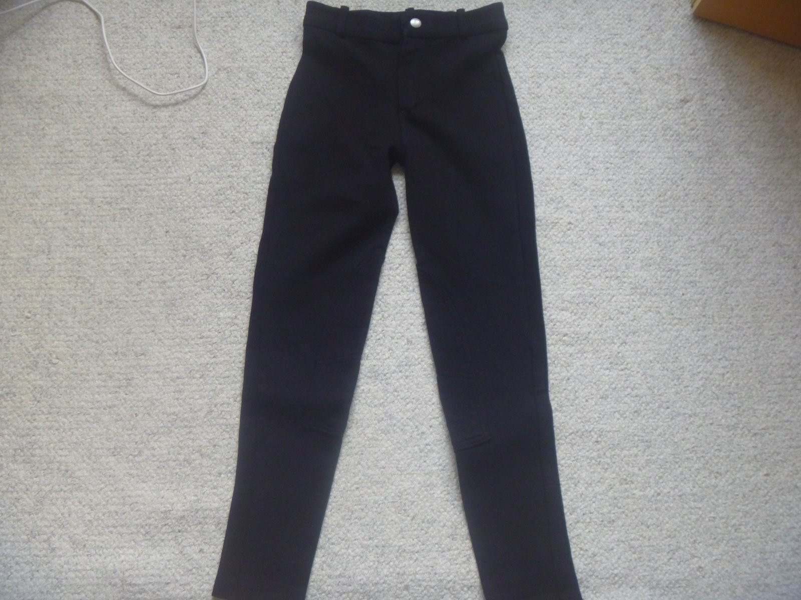 Prodám černé rajtky, v pase guma, poutka na pásek, zapínání na zip a háček, značka Fouganza (Decathlon), velikost 10 let, velmi dobrý stav.