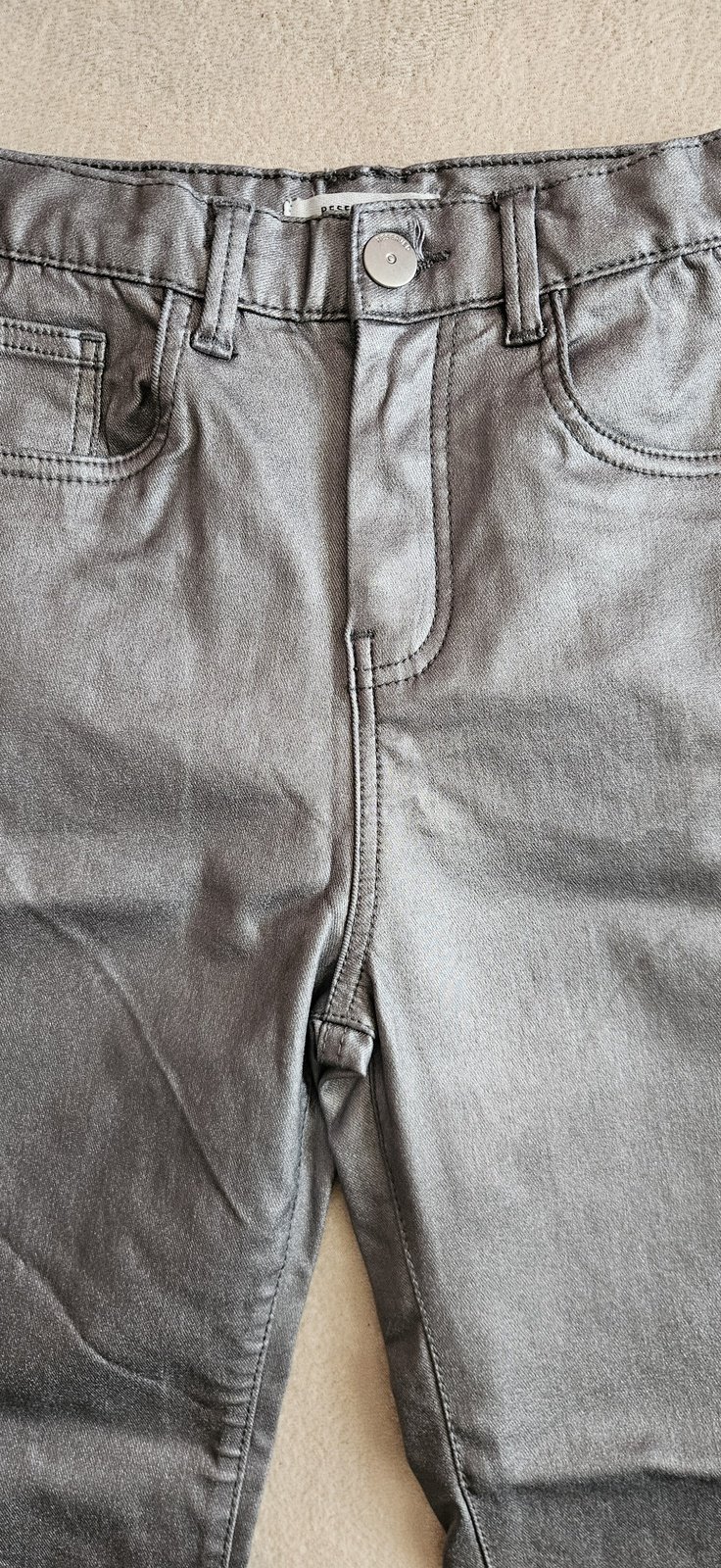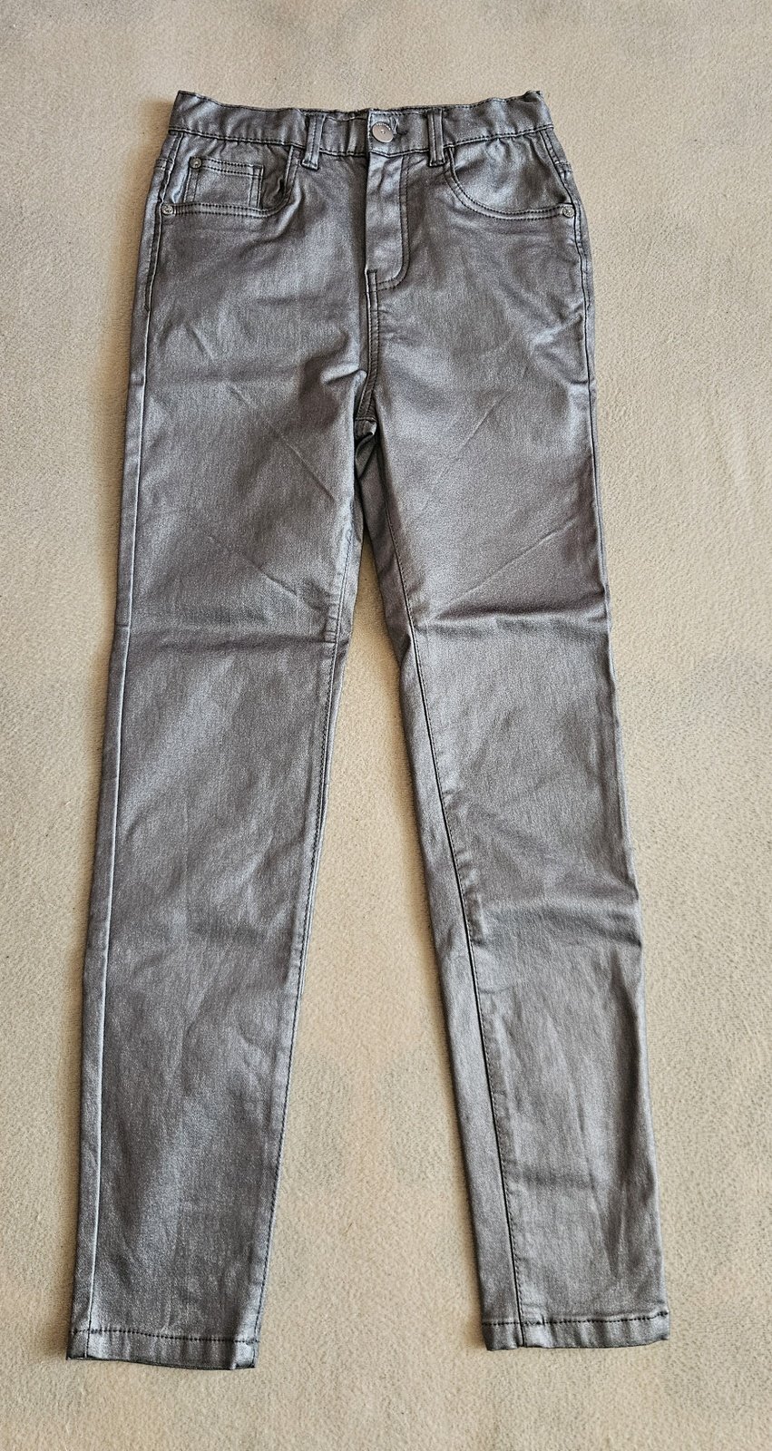Dívčí strečové stříbrné kalhoty, vel.152, Reserved