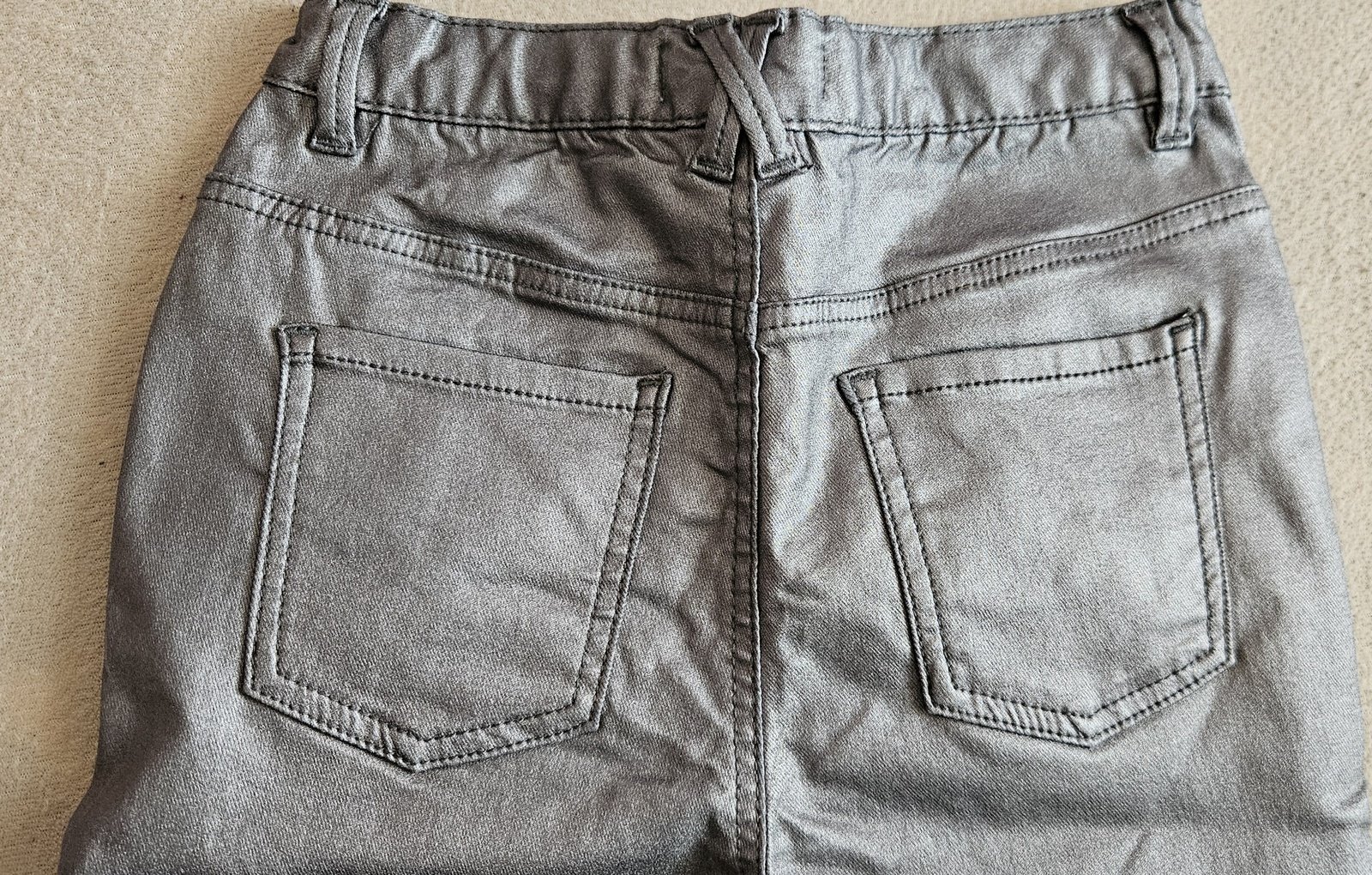 Prodám ve výborné stavu dívčí strečové stříbrné (šedé) kalhoty.