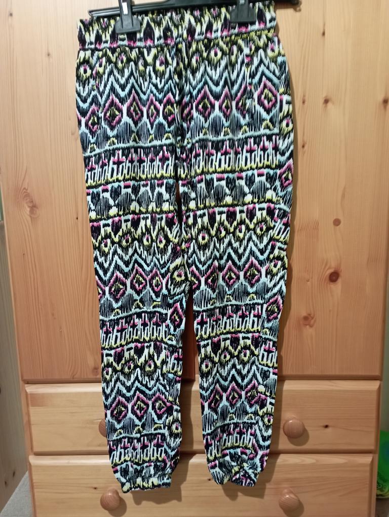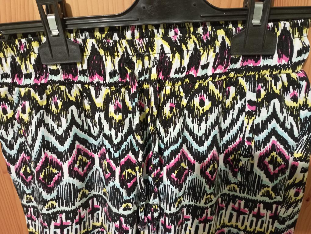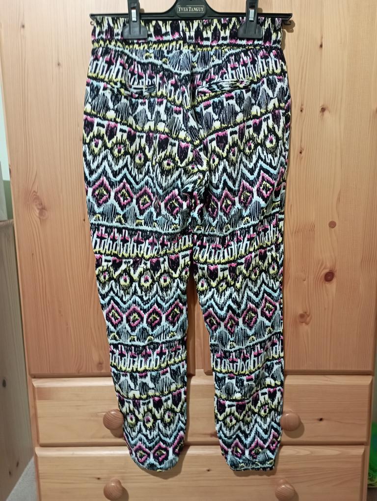 Prodám dámské letní kalhoty zn. Tally Weijl, velmi příjemný materiál, velikost 38. Nošené minimálně top stav, bez vad. V pase jsou do gumy a dají se přitáhnout šňůrkou. Mají dvě boční kapsy. Nohavice ukončeny do gumičky. Cena 150,-- Kč.