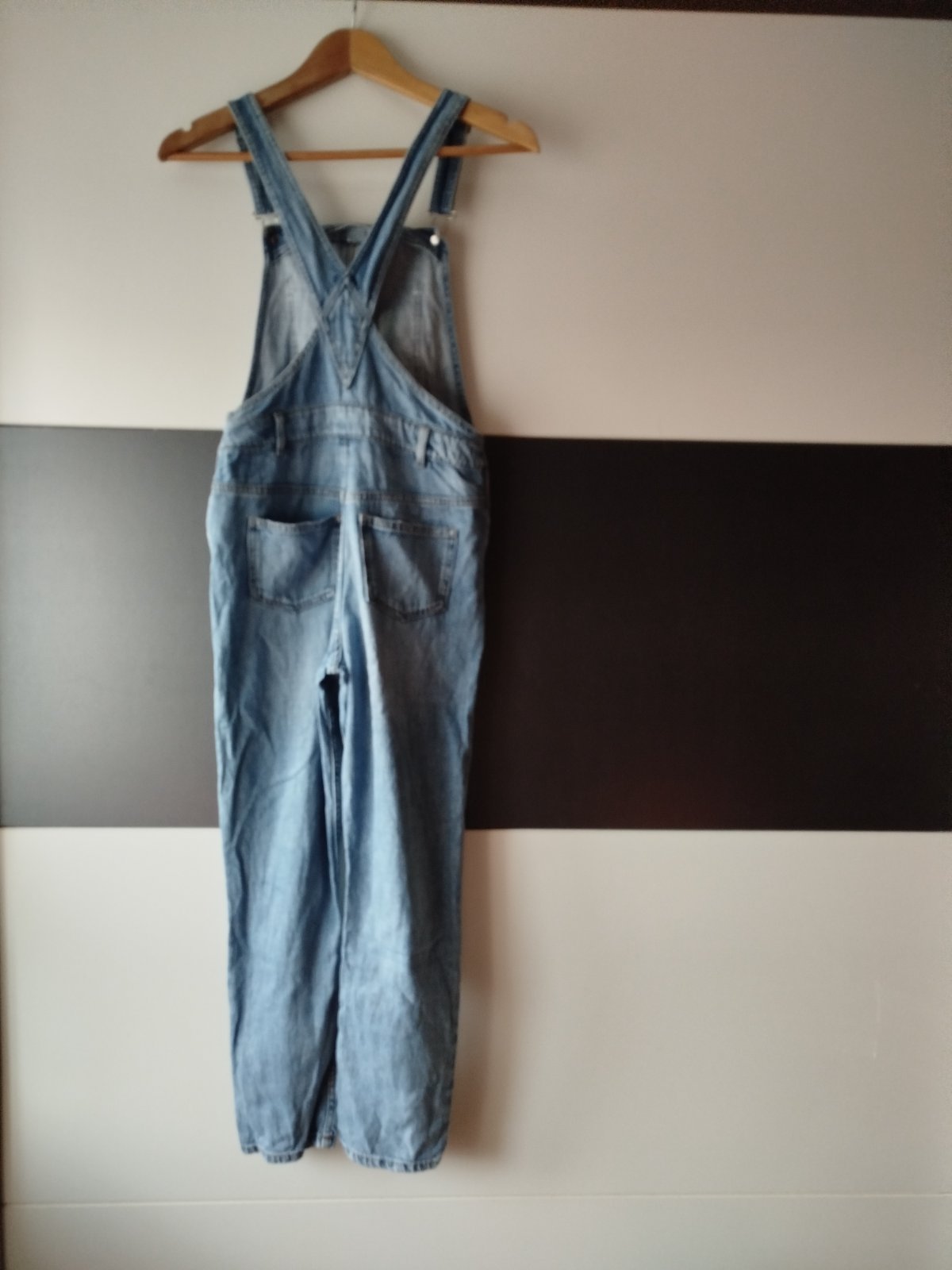 Délka měřeno bez kšandy od laclu 117cm, vnitřní část nohavice 67cm, šířka v pase 37cm, na lítačku venku
