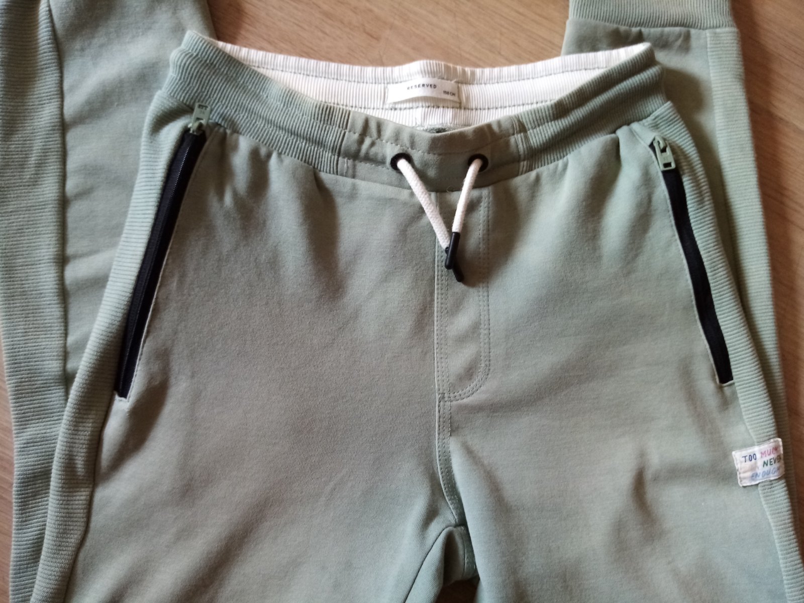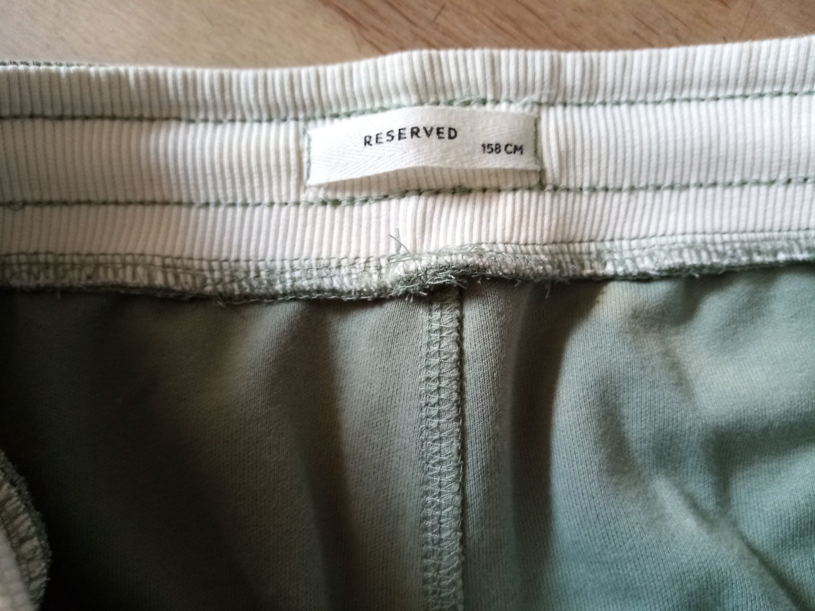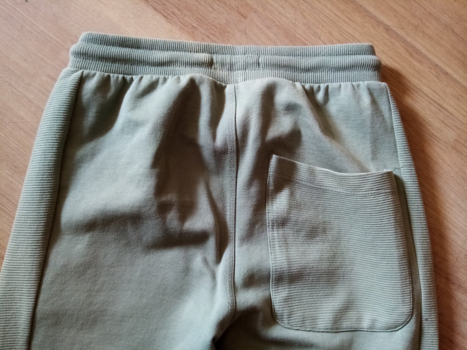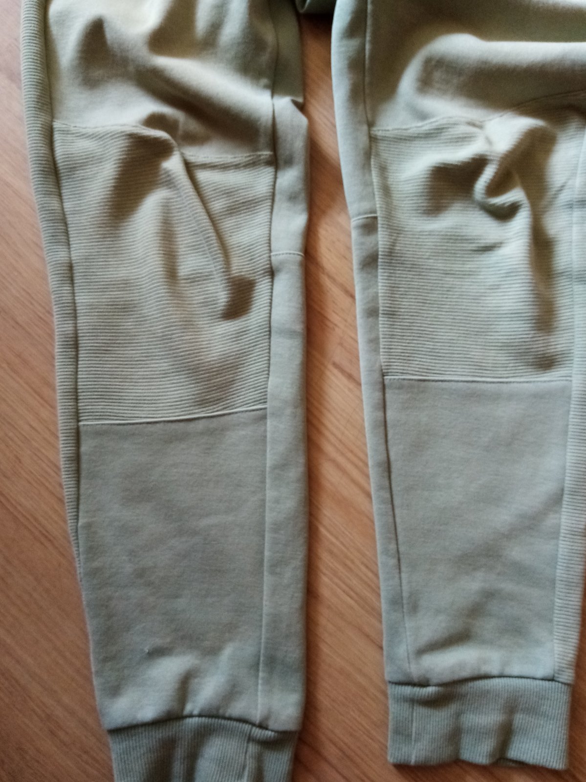 Tepláky Pepco. Běžné známky nošení. Uvolněný rozkrok.