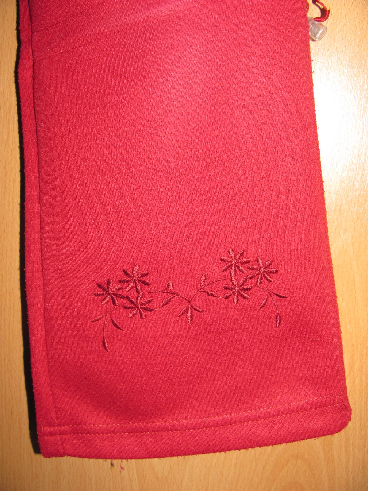 Vínové kalhoty, velikost 128, pas 24 - 35 cm, délka 74 cm. Guma na nohavicích zteřelá, lze vytáhnout, není potřeba.