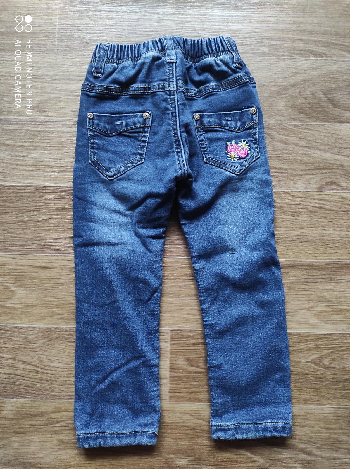 Denimové kalhoty značky Bootcut, velikosti 98. 99% bavlna a 1% elastan. Vyrobeno v Kambodže.