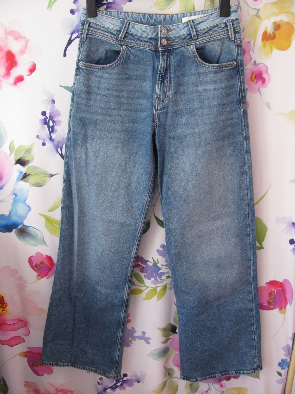 Skvělé, pohodlné, strečové široké džíny, zap. na zip a dva drukové knoflíky, přední, zadní kapsy, 99% bavlna, 1% elastan.
