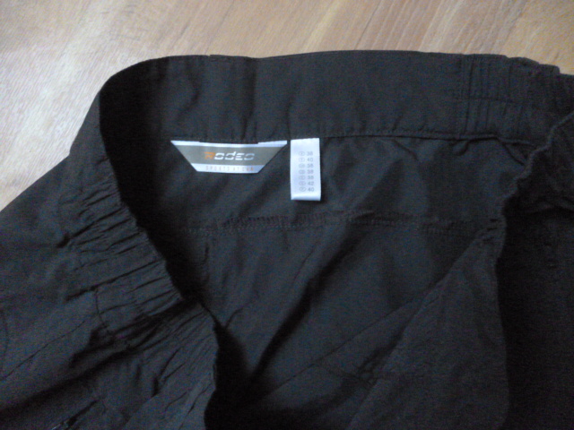 krásné, slabé, délka je 105 cm, na 3/4 77 cm, pas 2x38-44 cm, nohavice u rozkroku 32 cm, nohavice lze odepnout, psaná vel. 38,ale myslím spíš vel.40 zn.Rodeo