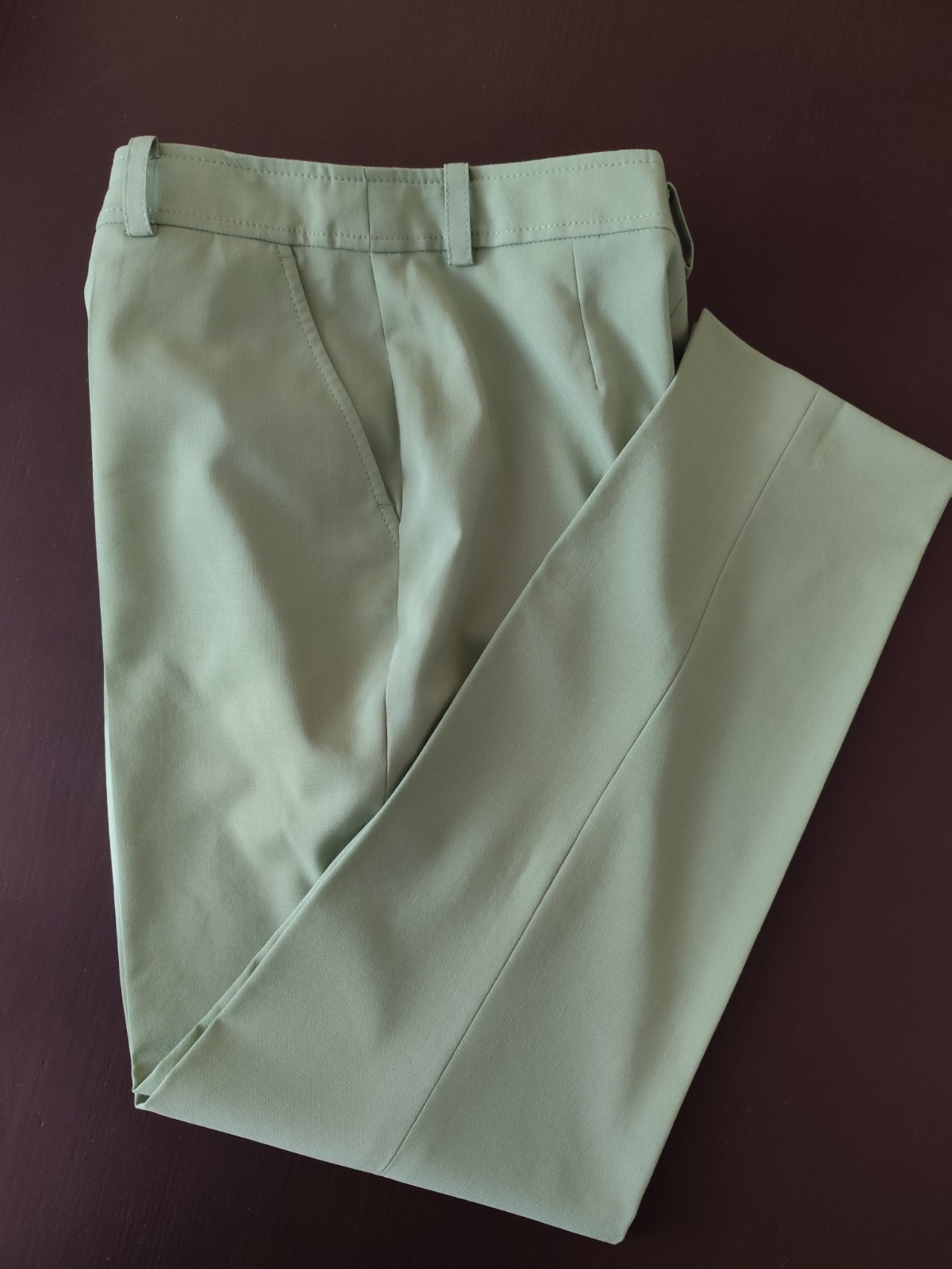 Párkrát oblečené dámske nohavice luxusnej talianskej značky. V páse 2 x 40 cm, dĺžka 99 cm. Zloženie: 98% vlna + 2% elastan. Vlna je prirodzene pružná, priedušná a má antibakteriálne vlastnosti. Vďaka lanolínu je antistatická a špinu odpudzuje. Veľmi vysoká NC, predávam za symbolickú cenu. Pozri posledné 2 fota (najlepšie vystihujú aj farbu).