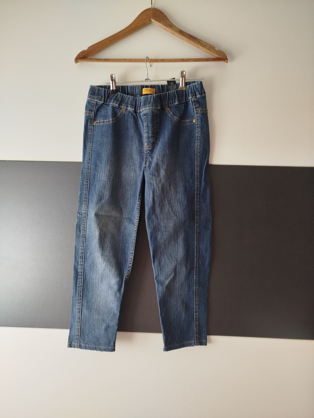 Délka 77cm, v pase jsou na gumu bez natažení 34cm, přes stehno 20cm, boky 39cm, dole nohavice 14cm, trošku jsou pružné, nezničené