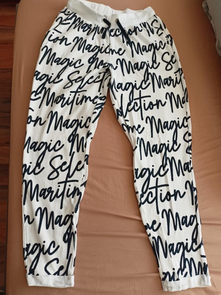 Pohodlné dámské kalhoty v pase do gumy, materiál tenčí, něco jako pevnější teplákovina, oblečené asi 3x, nesedí mi. Pas 36 - 45 cm, délka 96 cm, kapsy, vel. 40. Nové, bez vad