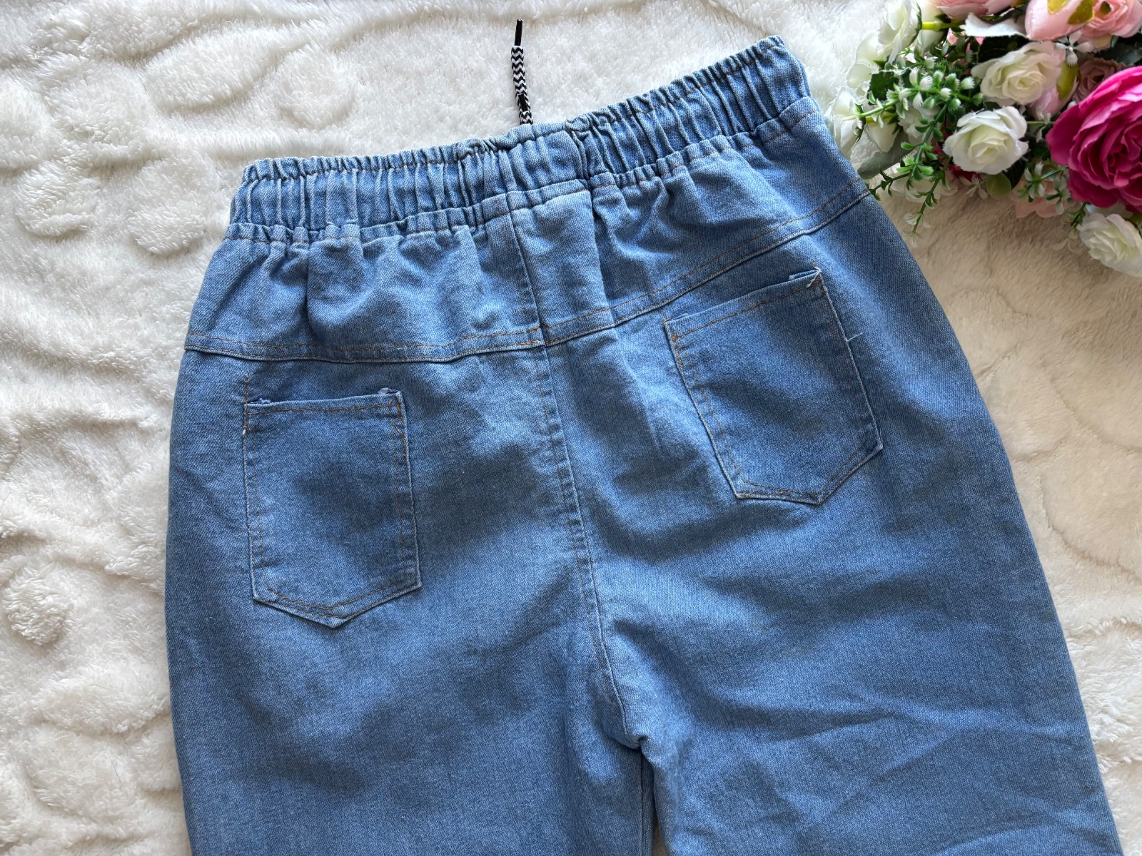 SUPER STAV: lehce nošené, bez vady. Krásné velikost odhadem . Stažení v pase šňůrkou .