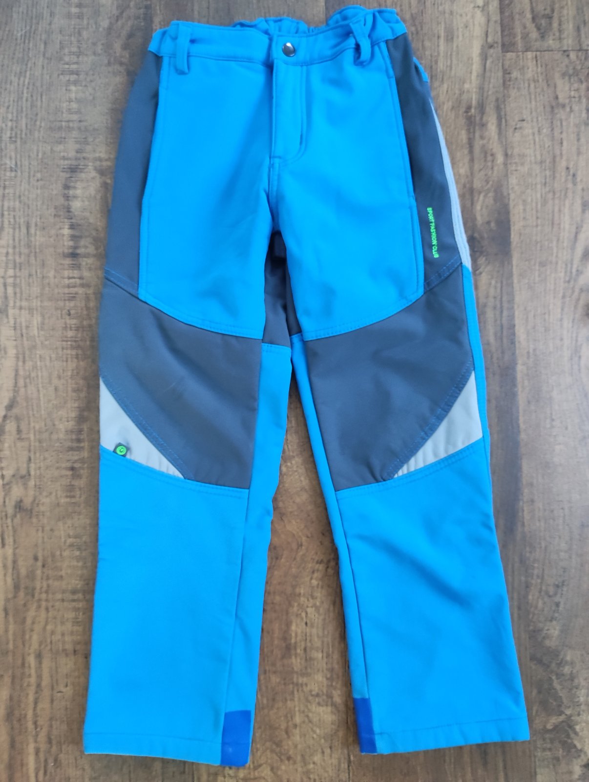 Chlapecké teplé softshellové kalhoty vel. 140, uvnitř fleece. Sportovní, širší střih, poklopec, v pase regulovací guma.