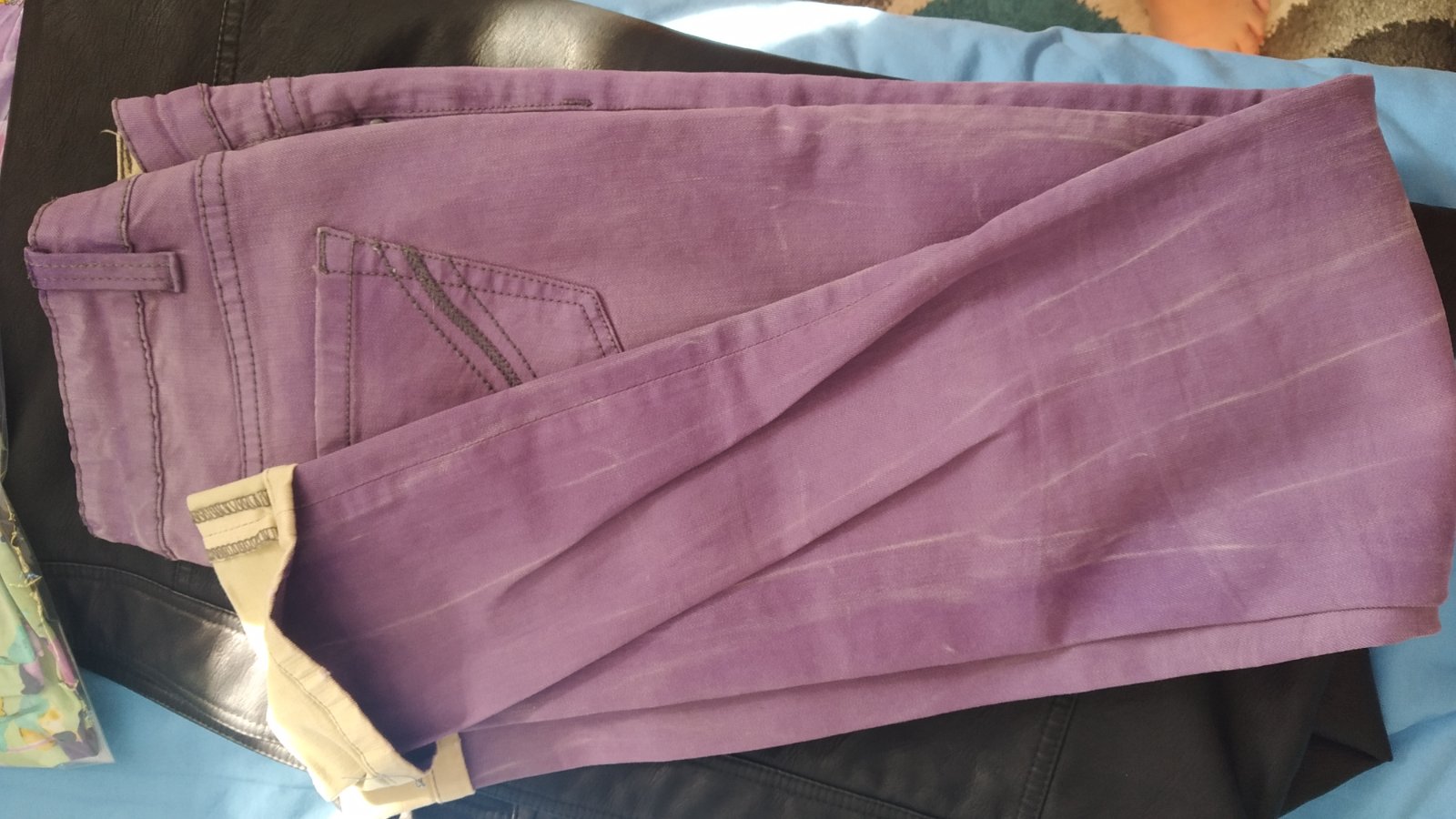 Pěkný nošený stav, bez děr a fleků. Elastické, přizpůsobí se postavě. Délka: 98 cm, délka vnitřní nohavice: 76 cm, pas: 2x33,5 cm, výška zadního sedu: 30 cm, výška předního sedu: 22,5 cm.