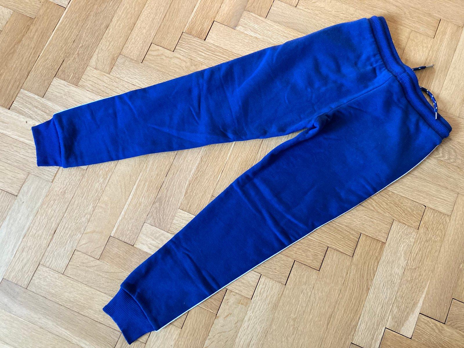 Nenošené (pouze vyprané) kvalitní teplé (uvnitř měkký teplý materiál), žádné vady (dcera vyrostla tak rychle, že už je ani neměla na sobě). Dvě kapsy vepředu, pružný pas s kvalitní tkaničkou v pase na zavázání, pružné zakončení nohavic. S blýskavým proužkem na bocích. Zn. Tchibo, velikost 134/140, rozměry: šířka v pase 30cm, délka nohavic od pasu 77cm, délka z rozkroku 56cm. Pořiz.cena 499Kč. Lze zaslat poštou (poštovné dle dopravce - Zásilkovna, Balíkovna) nebo osobní předání Praha 6-Bořislavka.