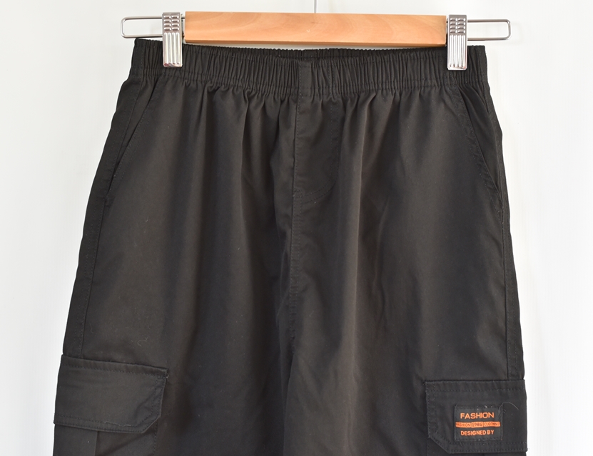 Černé plátěné kalhoty. V pase na gumu. není šňůrka na utažení.