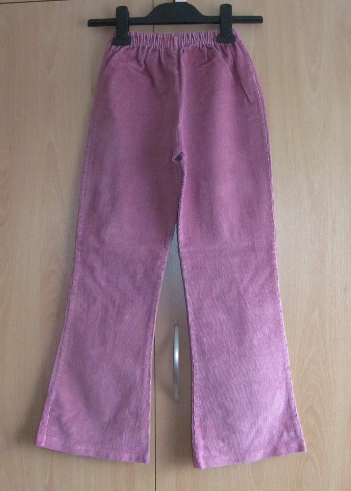 Růžovo-fialové manšestráky, do zvonu, v pase na gumu, pružné, barva tmavší než na fotce. V perfektním stavu. Velikost 146, pas 21 - 35 cm, délka 80 cm.