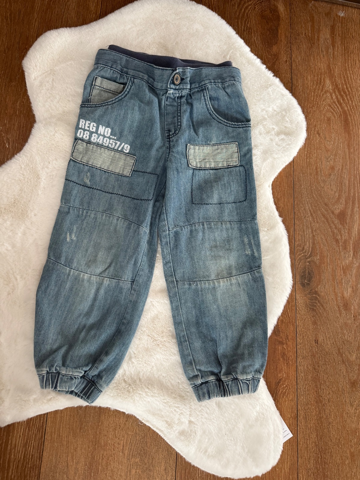 Kalhoty zn. Next, vel. 110/116, nošené a prané, kolena maličko světlejší, vlivem blesku to vystouplo více, než to ve skutečnosti je, jinak pěkné.