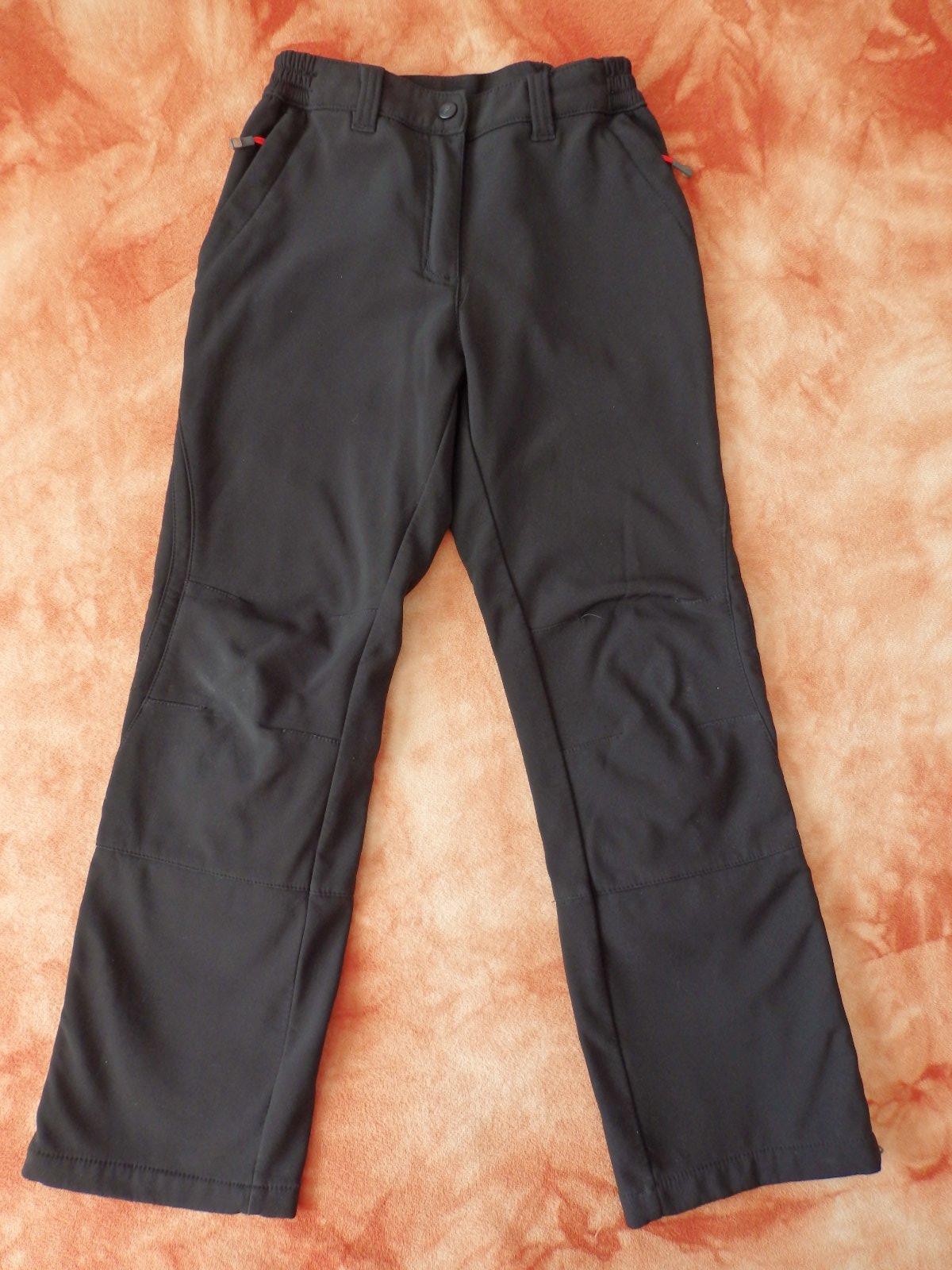 Pěkné flísem zateplené softshellové kalhoty zn. Epister, velikost uvedena 146/152, ale jsou menší, odpovídají spíše 140/146, ve velmi pěkném stavu. Dvě boční kapsy na zip, zapínání na zasouvací patentek a na zip. Na dolním konci nohavic rozepínání na zip.