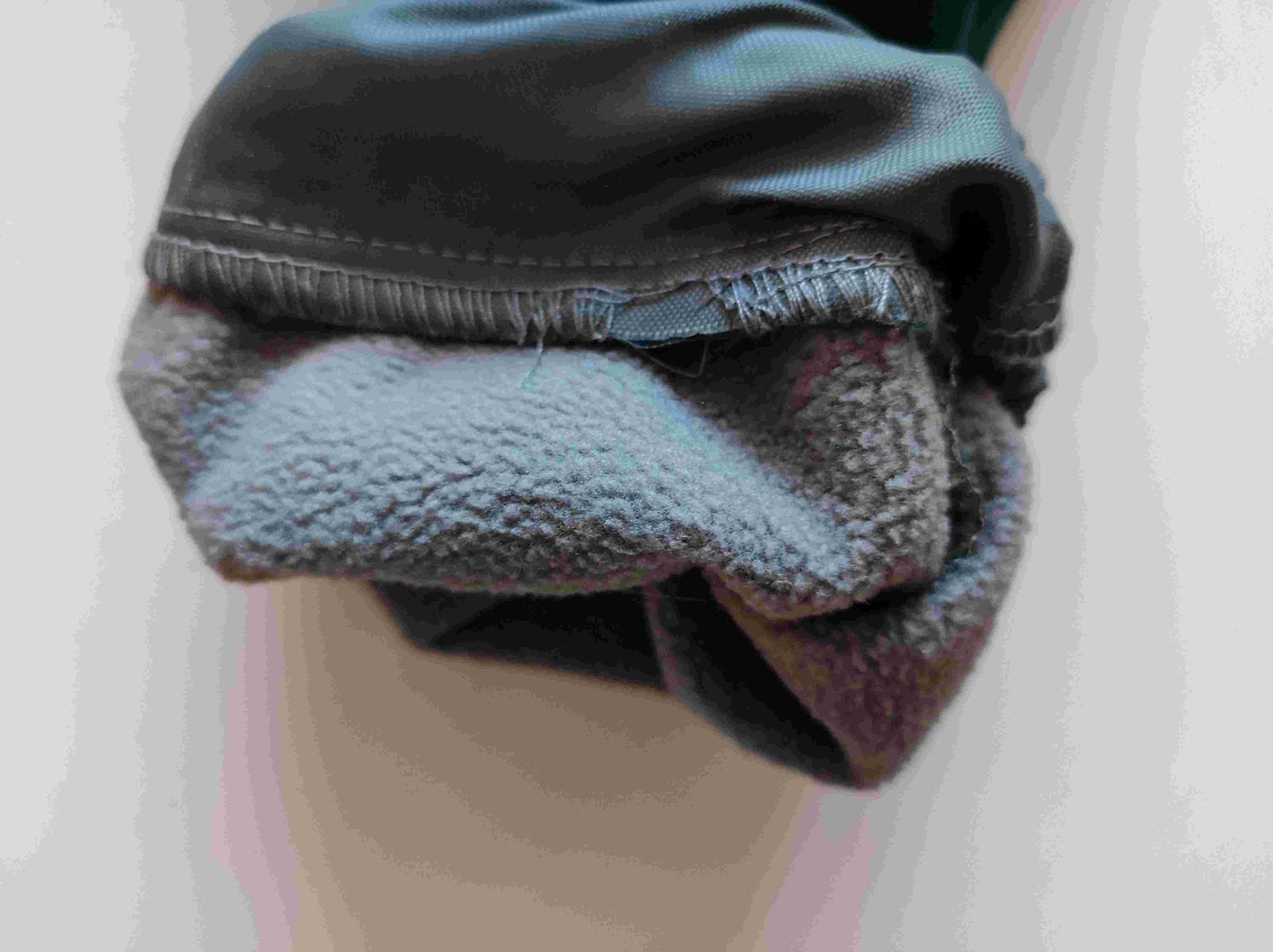 V pase guma a vnitřní šňůrka, 3 kapsy na zip, dole v nohavicích šusťákové náplety proti vniknutí sněhu