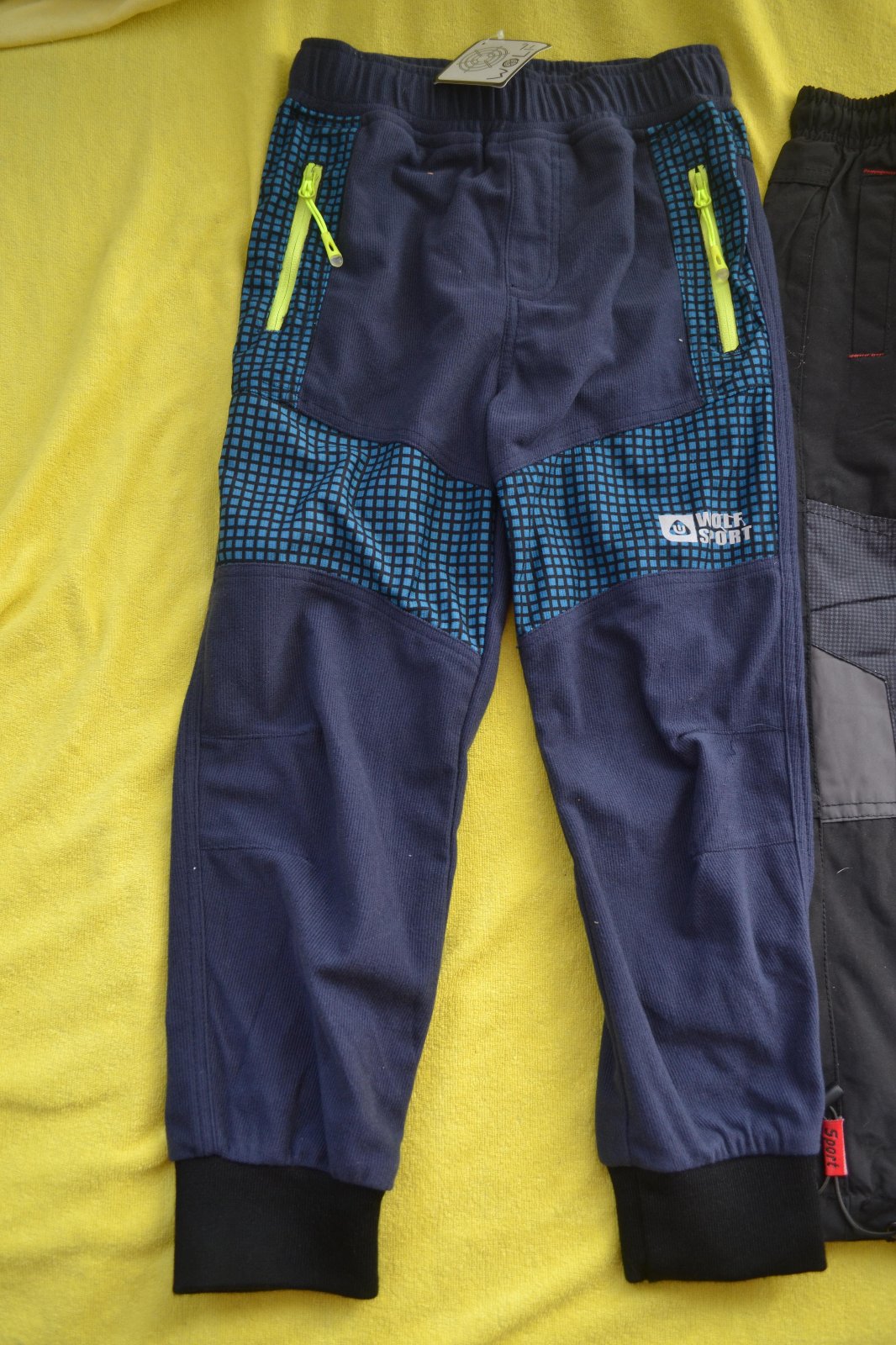 2x výborné nové podzimní kalhoty Wolf bavlna+ praktické oteplené zimní ,v pase na stažení, kapsy,oboje v.104, cena celkem za oba kusy