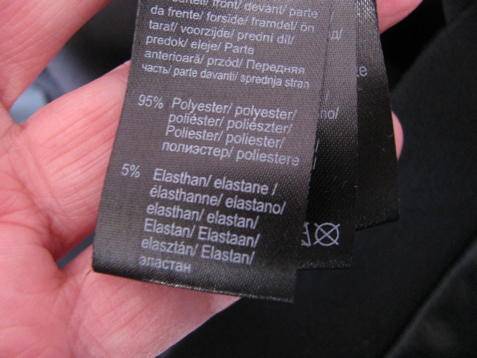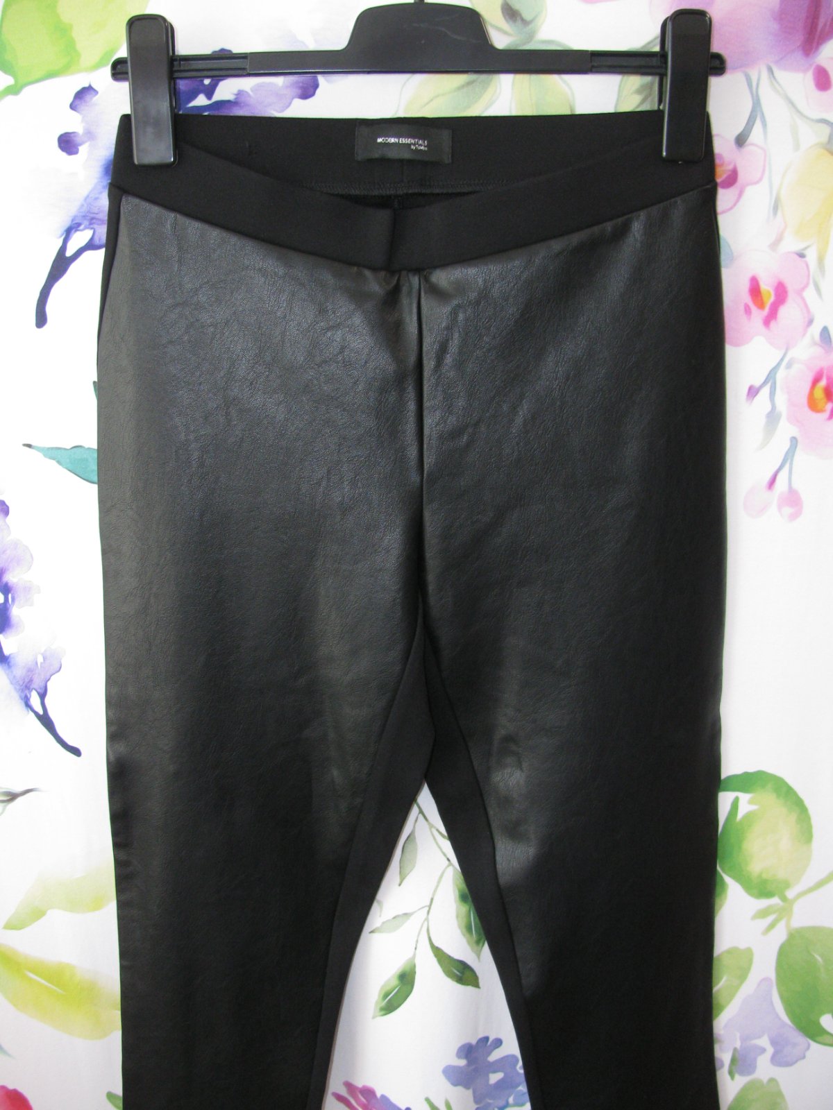 Skvělé ,pružné, dámské koženkové kalhoty, s pružným pasem, kůže je jen ve předu, zezadu je pružná, elastická látka, bez kapes, 95% polyester, 5% elastan, dále-61% viskoza, 33% polyamid, 5% elastan, .Lze prát na 30 st. vel.36/38.