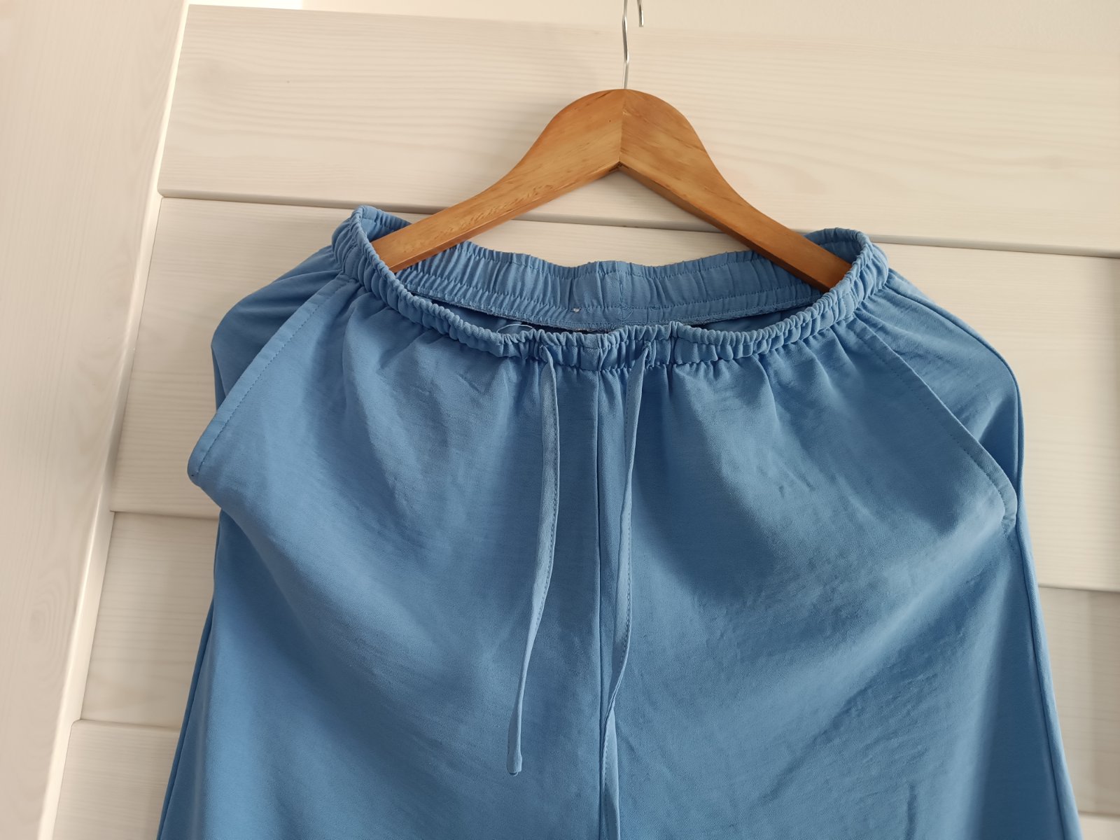 Volné kalhoty z lehoučkého nemačkavého materiálu v pase guma + šňůrka 2 kapsy Rozměry: šířka: 34 cm délka: 101 cm sed: 33 cm