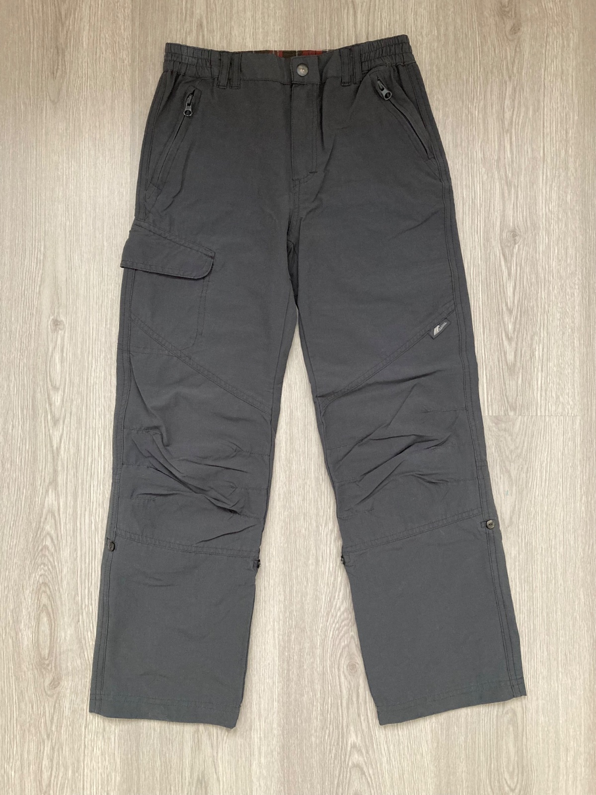 Prodám plátěné sportovní kalhoty. V pase na zip a háček. Možno zkrátit na 3/4 kalhoty. Velikost uvedena 140, ale přijdou mi větší. Míry: d - 86,5 cm, š - 31 cm.