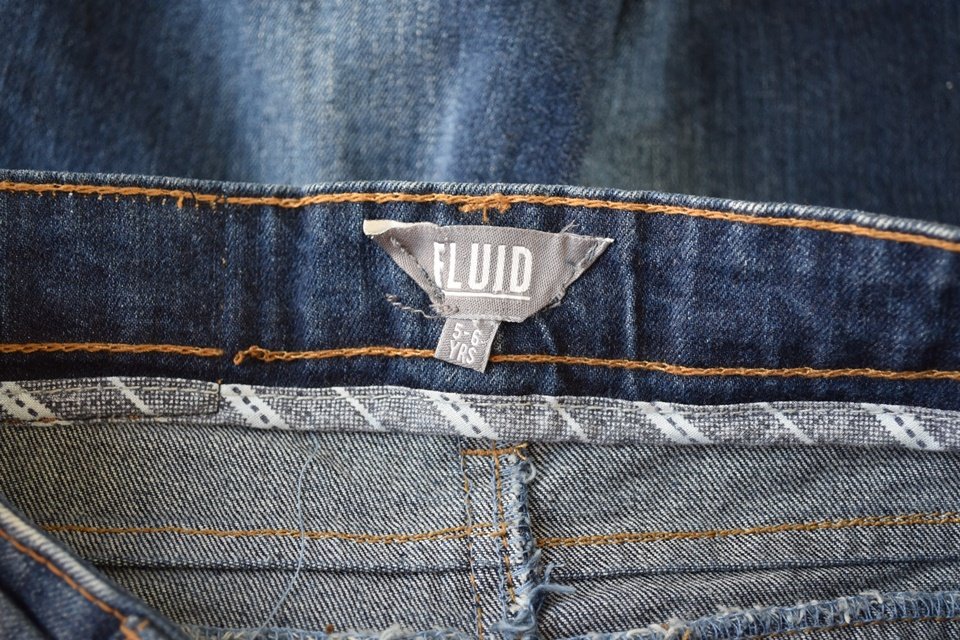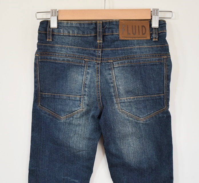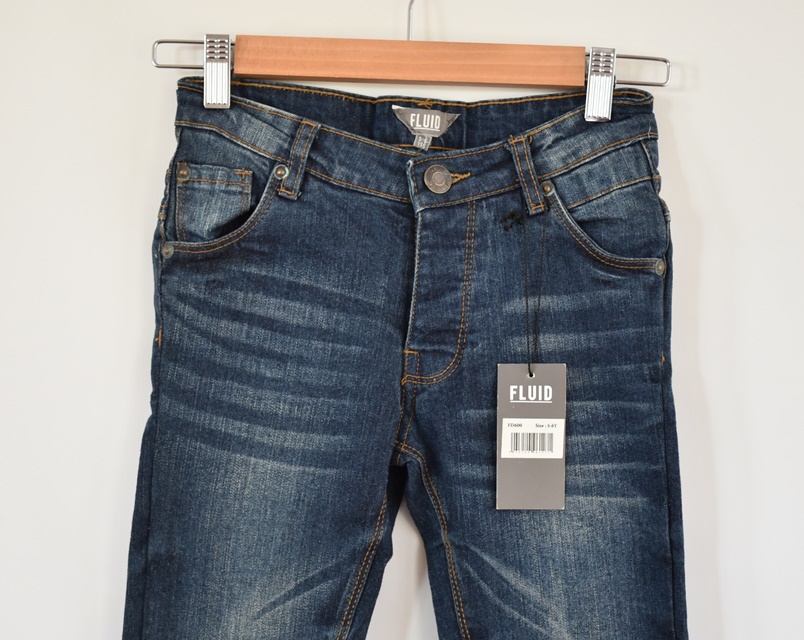 Tm. modré džíny značky Fluid. Pružné, v pase regulace není. Zapínání knoflíky.