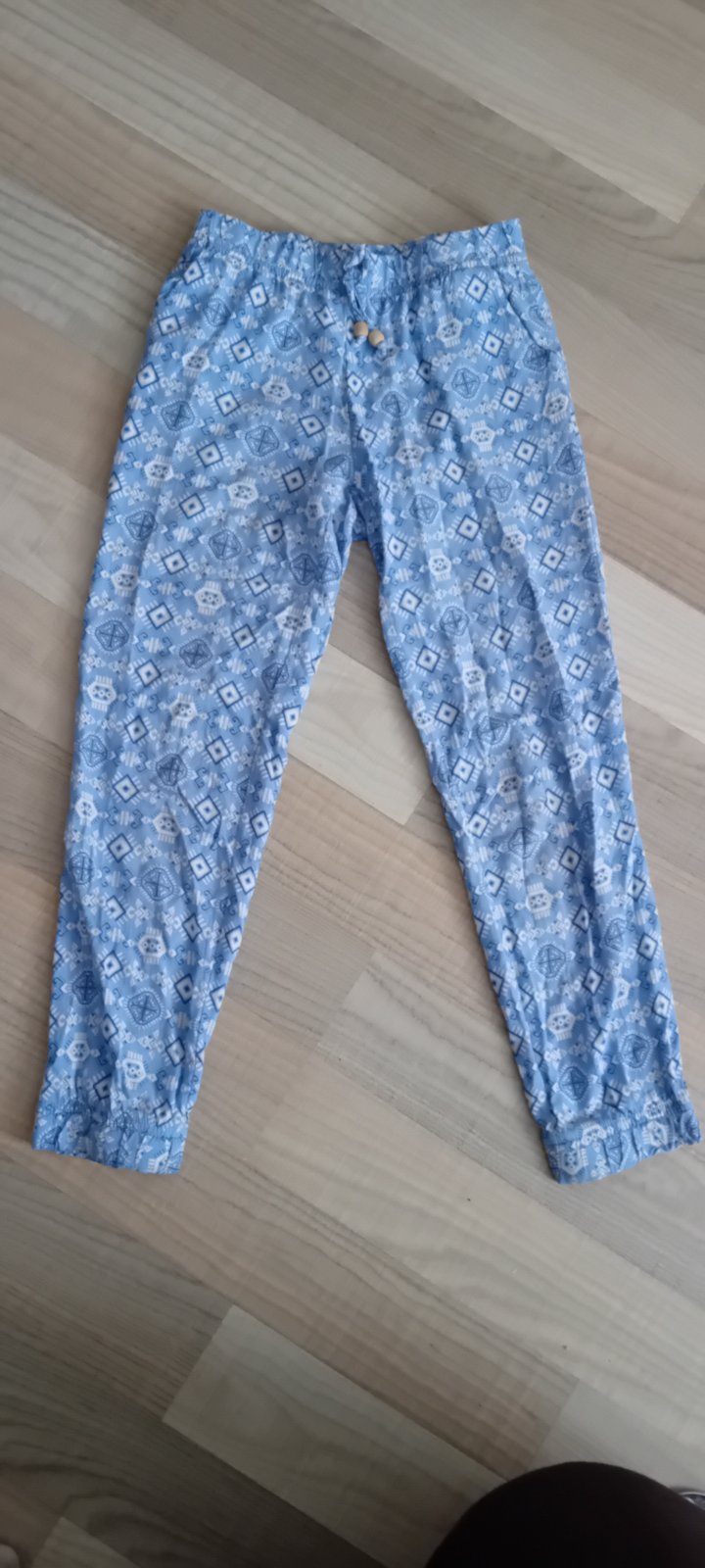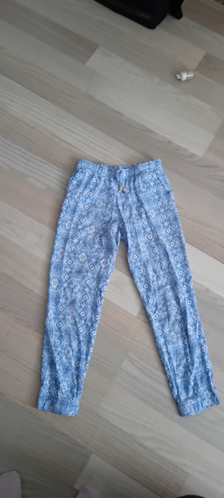 Tenké plátěné kalhoty volného stylu.Velikost 134/140. Nošené minimálně. Idealni na horké dny.