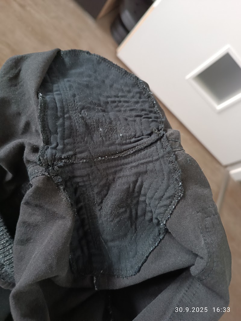 Velmi pěkné. V pase regulace na gumu a knoflíky. Vzadu na pásku se odlupuje ozdoba.