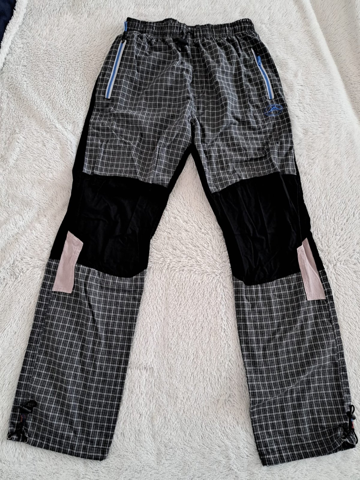 Kostkované outdoorové kalhoty /modré a grafitové