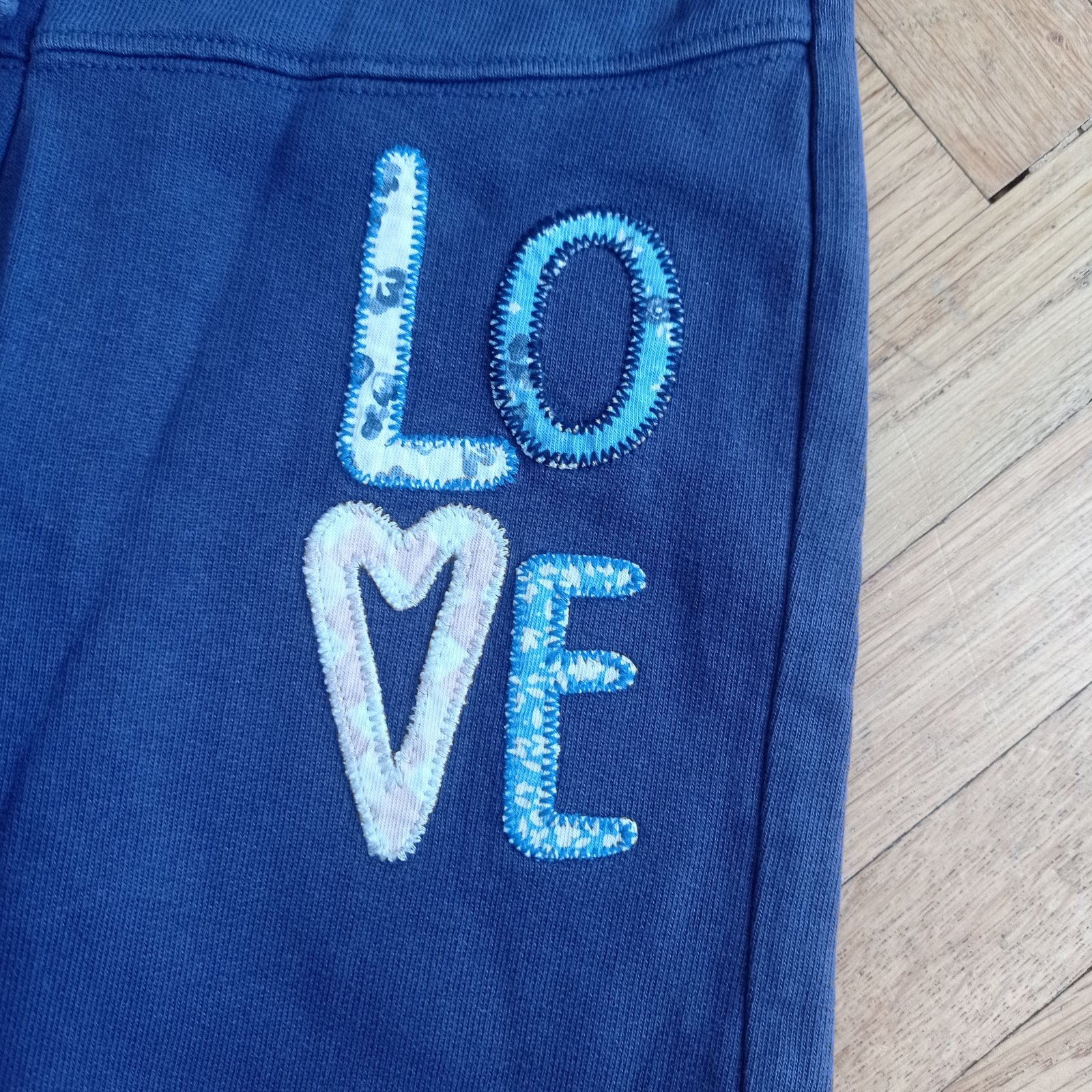 set dvou tepláčků s vločkama, stahovací šňůrky mají už nějaké flíčky, umounění na zadečku či kolenech, nenápadně zašívané kolena cd 63cm, pas 2x28-33cm prodej a cena dohromady