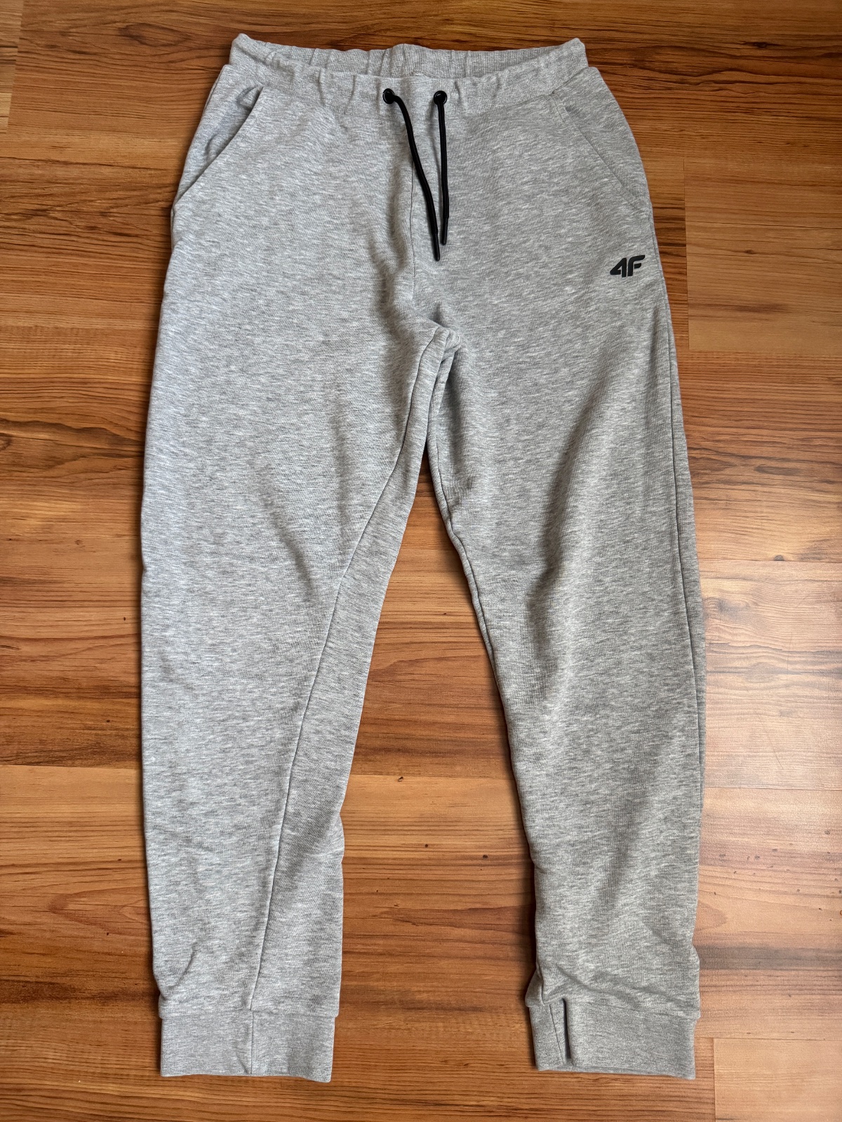 Světle šedý melír, bavlna. Pohodlné tepláky, minimálně nošené, jsou mi těsné, nabízím dál.