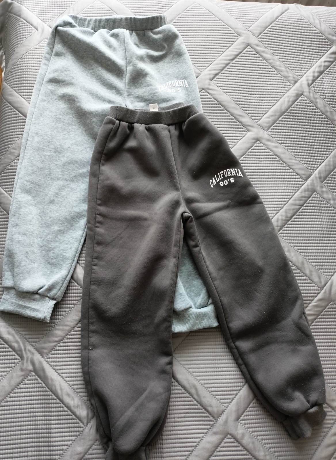 Prodám 2x dětské tepláky Californie vel.128/134 uvnitř podšité fleecem. Pás na širokou gumu, nohavice ukončena manžetou.