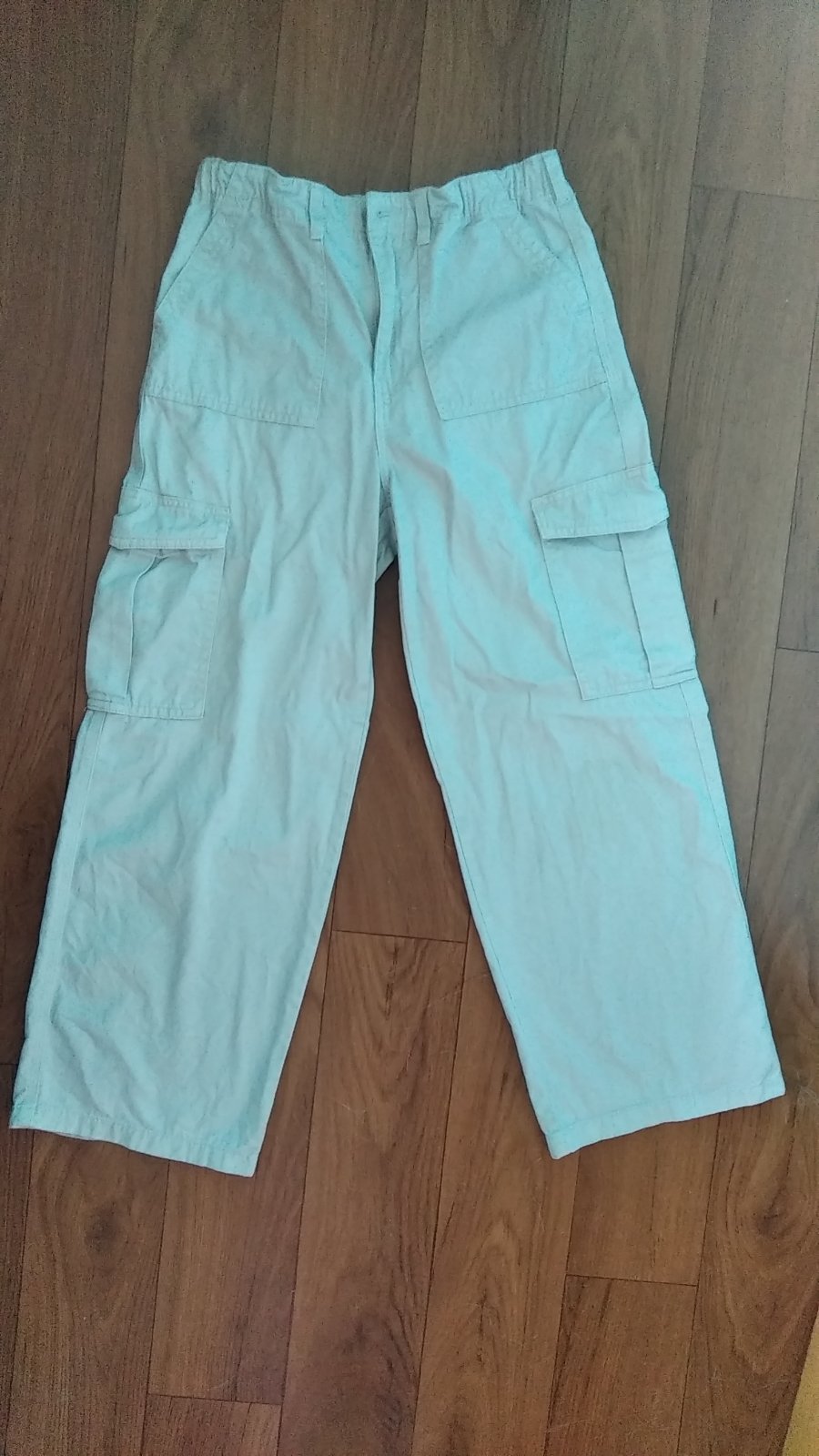 Prodám letní kalhoty Zara, pruživý materiál. Celková délka 88cm, délka od rozkroku 65,5cm, pas 32x2cm. V pase jsou knoflíčky. Uvedená velikost je 164, ale odpovídá 152-157.