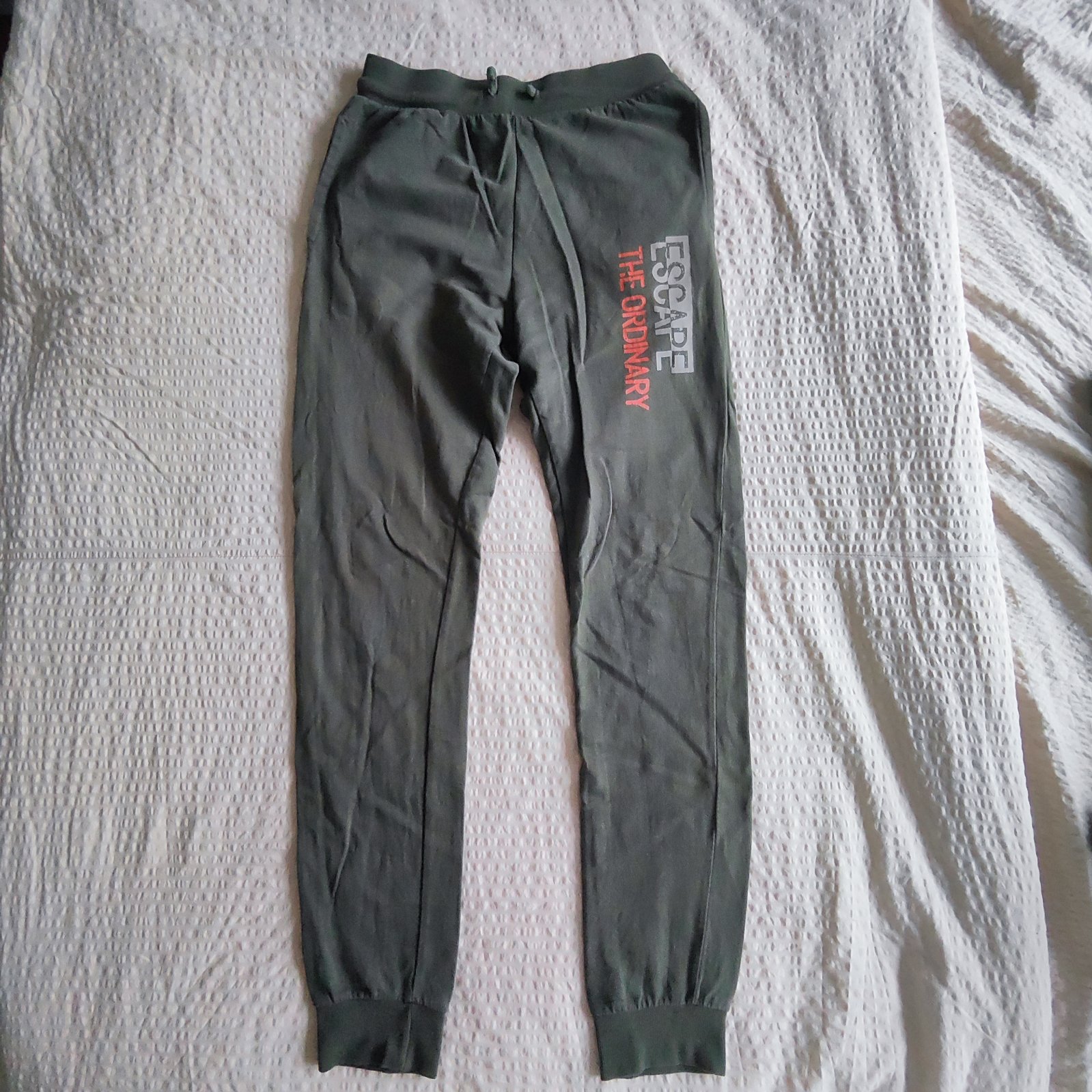 Nabízím chlapecké klučičí khaki tepláky, tenčí, bez procesu uvnitř. Velikost 164, zn. Destination. Nošené, nepoškozené, bez žmolků, 2 postranní kapsy. Postranní délka 100 cm, od rozkroku 72 cm, šířka pasu 34 cm, s gumou, s možností regulace šňůrkou. Balíkovna 75 Kč, Zásilkovna 89 Kč, osobní předání na P4 Chodov, P8 Palmovka nebo na metru C a B mezi těmito stanicemi po domluvě.