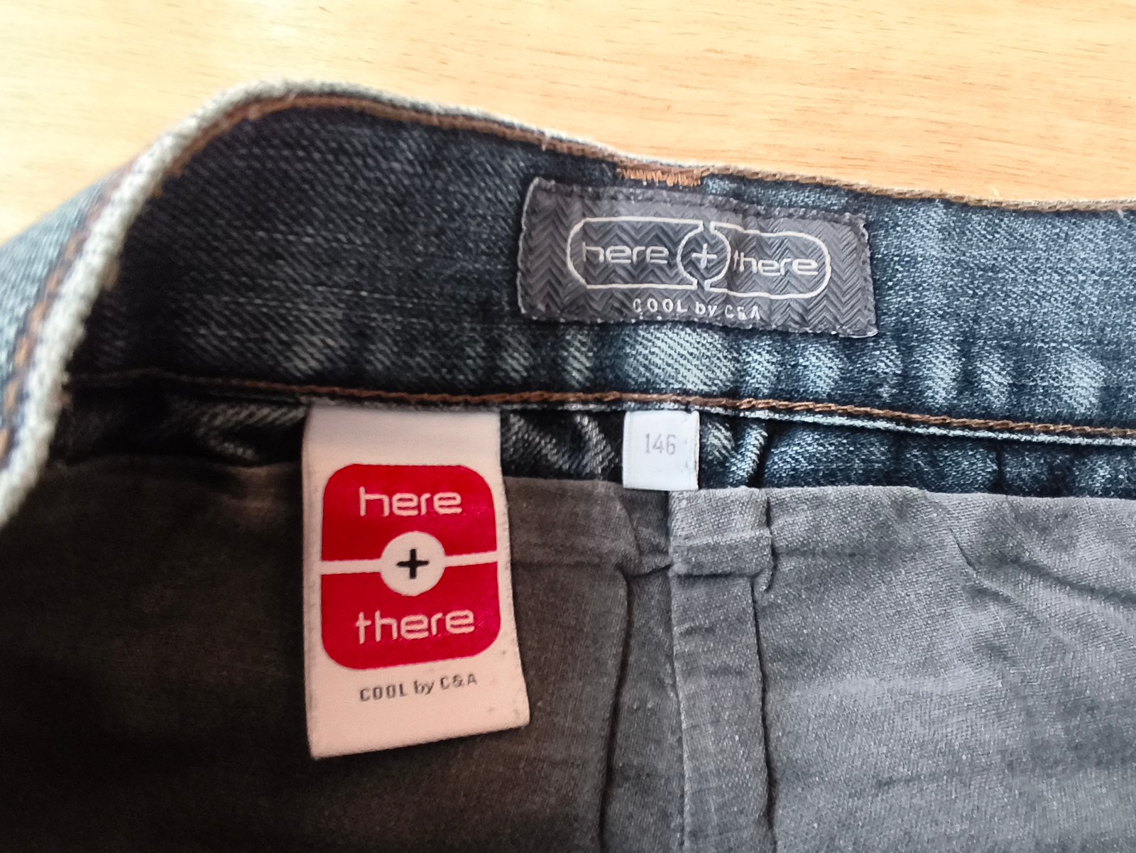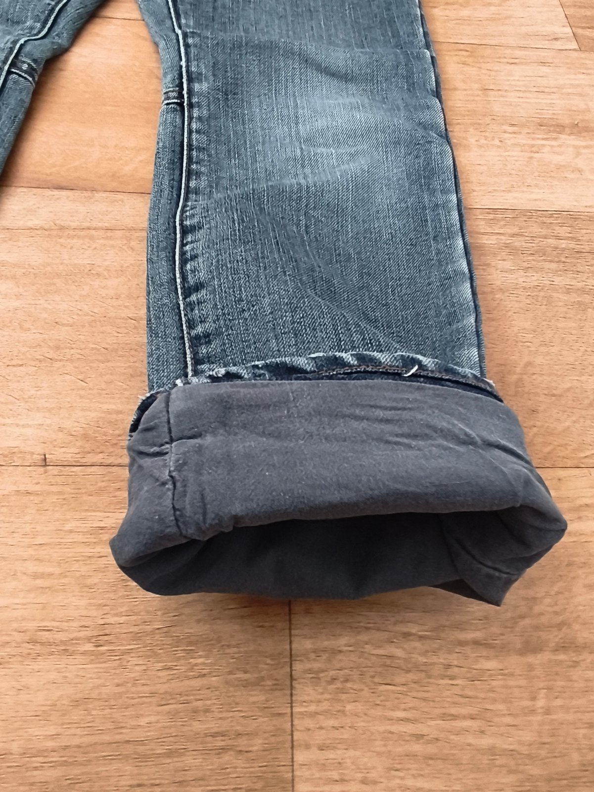 Džíny podšité bavlnou. Velikost uvedena 146, ale přijdou mi menší - prosím měřte. Rozměry a podrobný stav na fotkách.