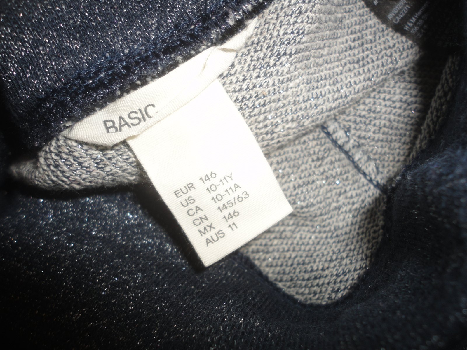 Středně silné kalhoty/tepláky, materiál 72% bavlna,19% polyester, 9% kovové vlákno, třpytky vetkané v látce, zdobně ohrnuté nohavice a lemy na bočních kapsách, pas guma+funkční šňůrka na dotažení, d. 90cm, vnitřní 64cm, nohavice lze v případě potřeby i více ohrnout, pas 32-34,5cm