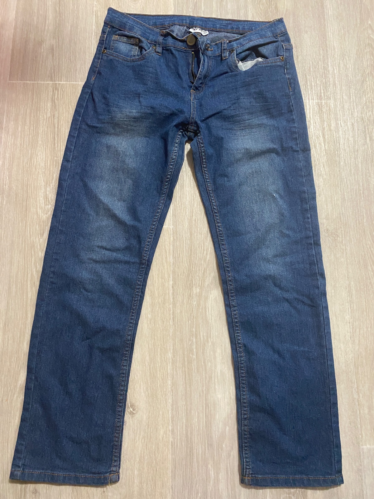 Rifle zn. Takko, vel. 158, délka 85 cm, délka od rozkroku dolů 65,5 cm, pas 38,5 cm. Zapínání na zip a knoflík. Na kolenou jsou zaprané (asi od trávy). Poštovné dle ceníku ČP.