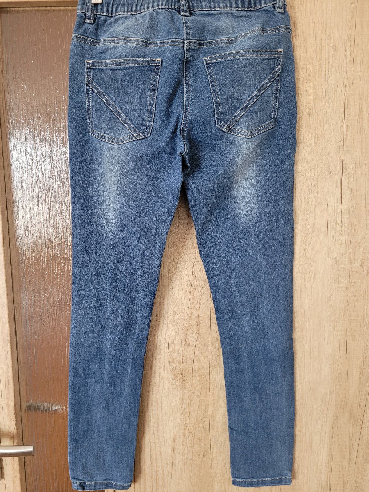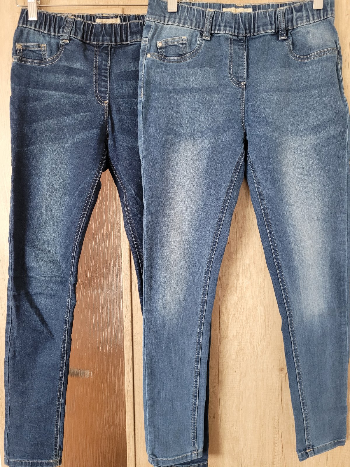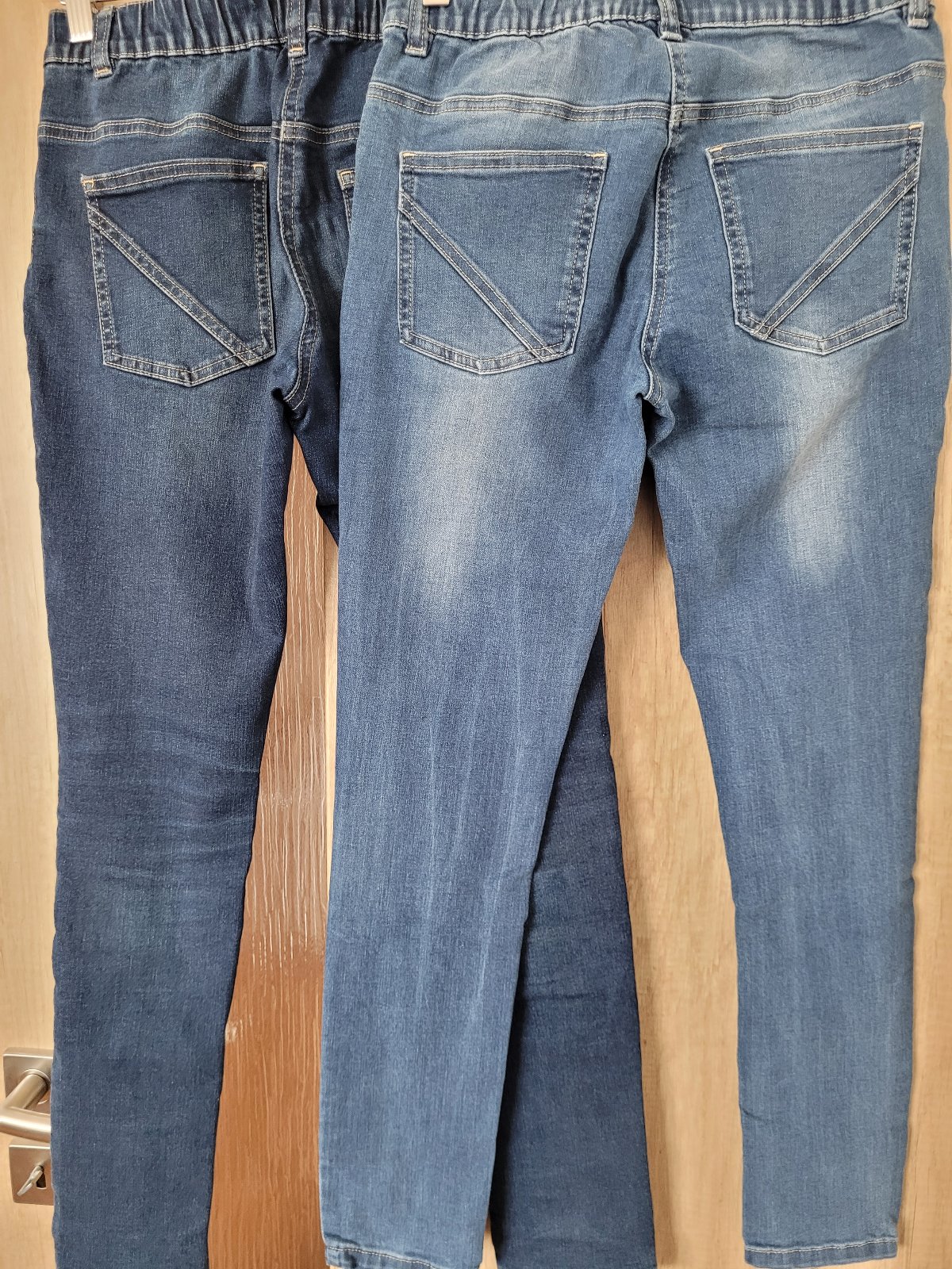 tmavé nošené,přidávám zdarma,v pase do gumy,jsou s elastanem,stř.modré jen vyprané dcera neunosila