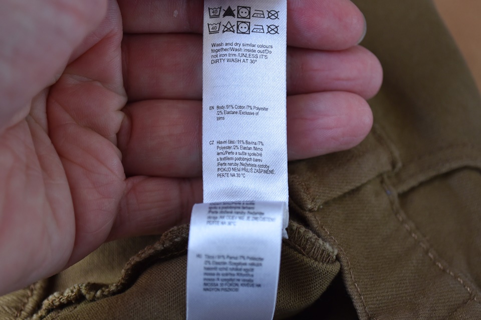 VELMI DOBRÝ STAV – oblečení nese známky nošení a praní, jako patrnější chloupek, mírně opraná barva, žmolík jen na lemech,