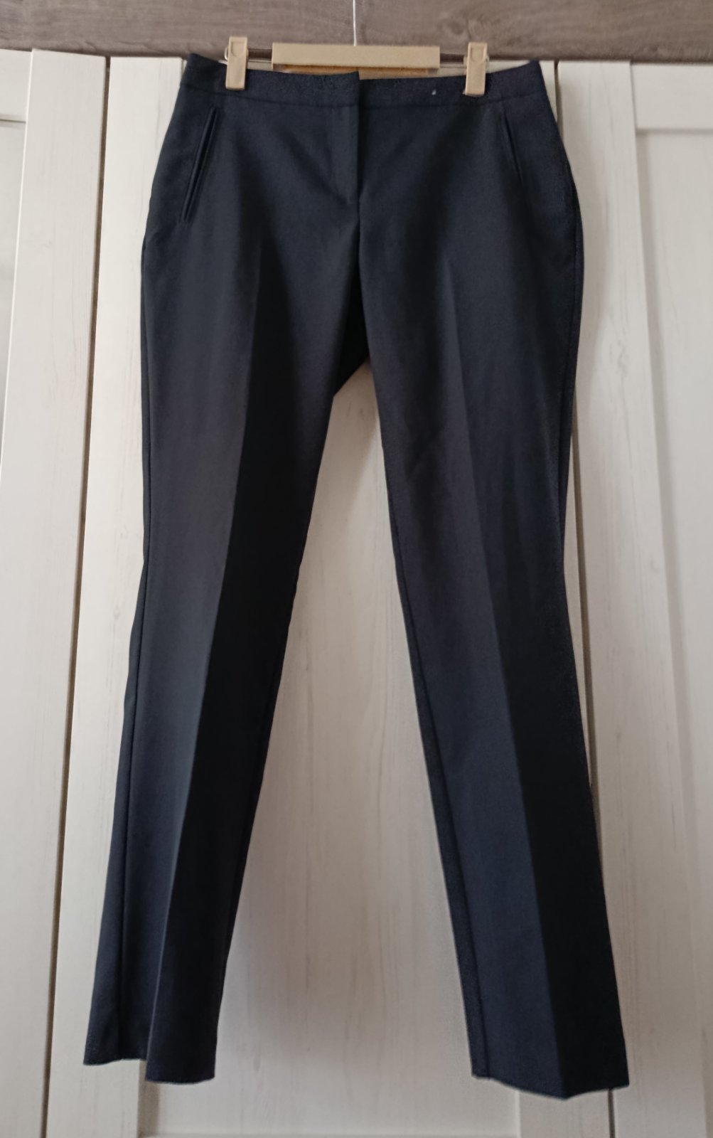Super kostýmkové kalhoty. Boční kapsy, nažehlené puky :-) Vzadu nefunkční kapsy.....Vhodné do společnosti, do kanceláře, na denní nošení. Kalhoty jsou ve velmi dobrém stavu.....Na fotu jsou s páskem, ale ten není součástí prodeje! Míry : délka 97 cm, pas 2 x 39 cm. Materiál : polyester + elastan. Poštovné - balíkovna za 85 Kč nebo zásilkovnou za 90 Kč