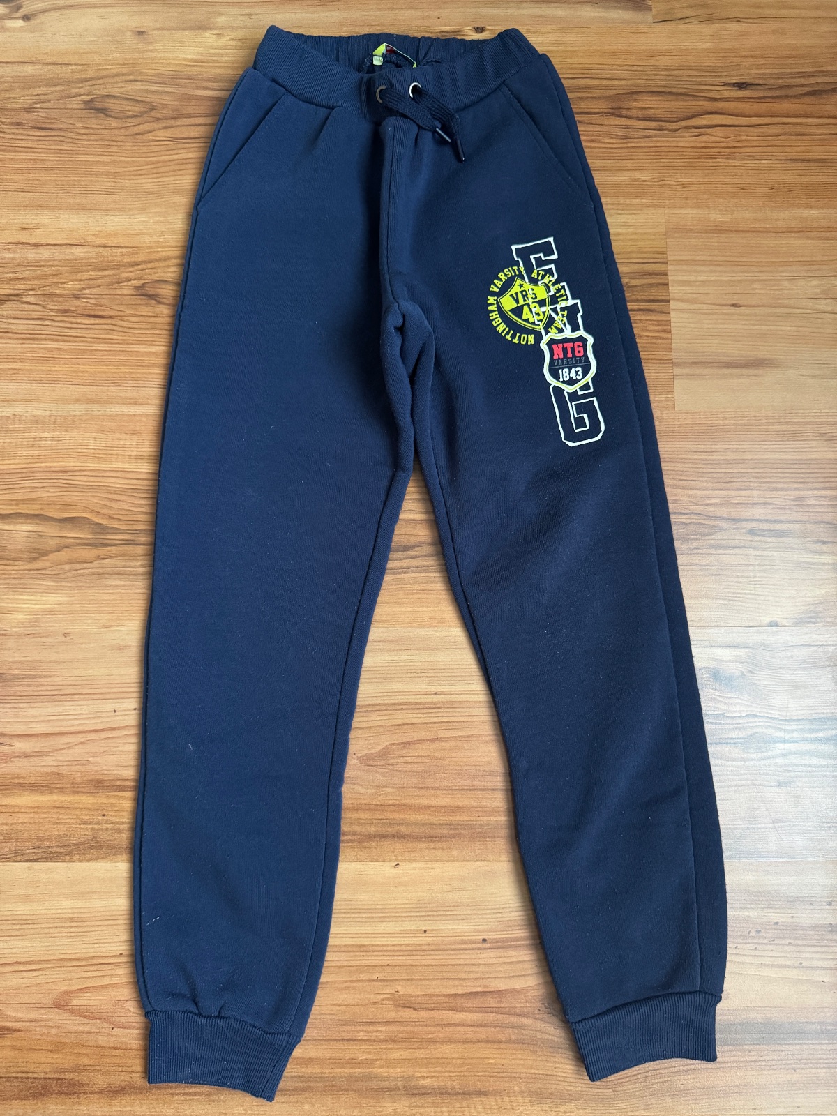 Vel. 152 modré tepláky s kapsami a tkanicí
