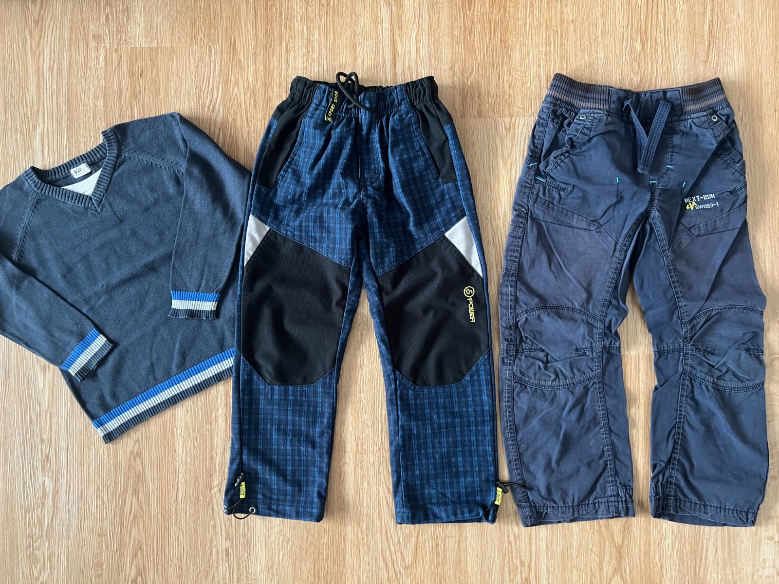 Prodám nošené kalhoty v pěkném stavu + přidám lehký svetřík F&F a 3 páry ponožek