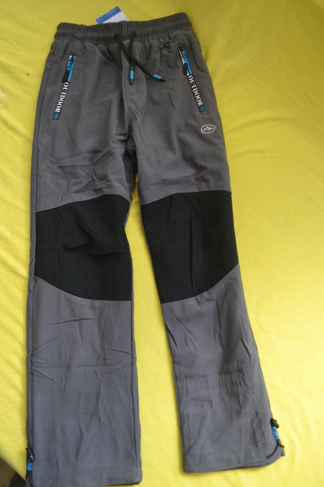 výborné oteplené kalhoty,materiál převážně bavlna,uvnitř fleece,v pase na stažení,kapsy na zipy,pevné, dobré na ven i do školy,velmi praktické a pohodlné