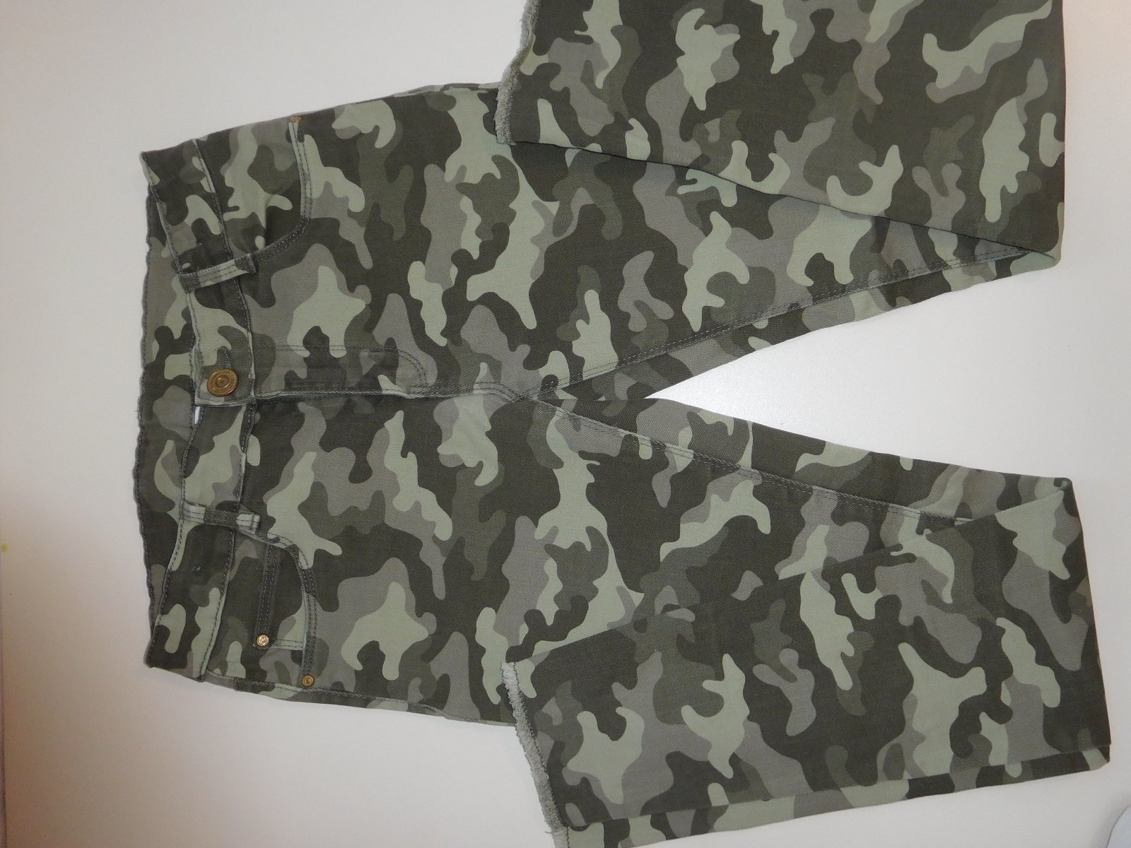 maskáčové džíny s roztřepeným ukončením nohavic zn. CA vel. 140, posuvné pásky v pase, ve výborném stavu