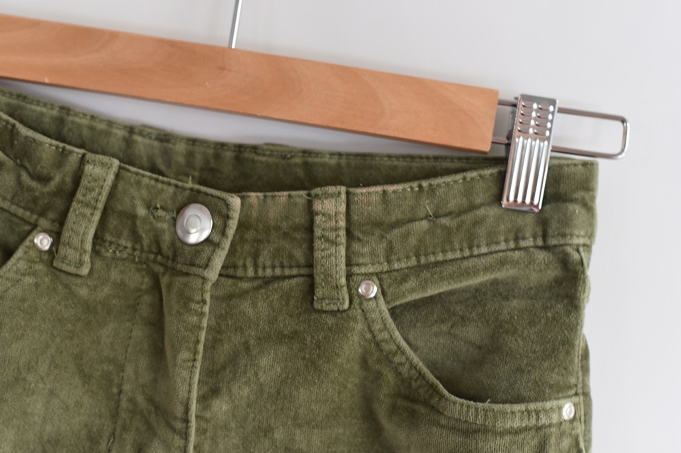 Zelené sametové džíny značky Hip & Hopps. Pružné, v pase regulace.