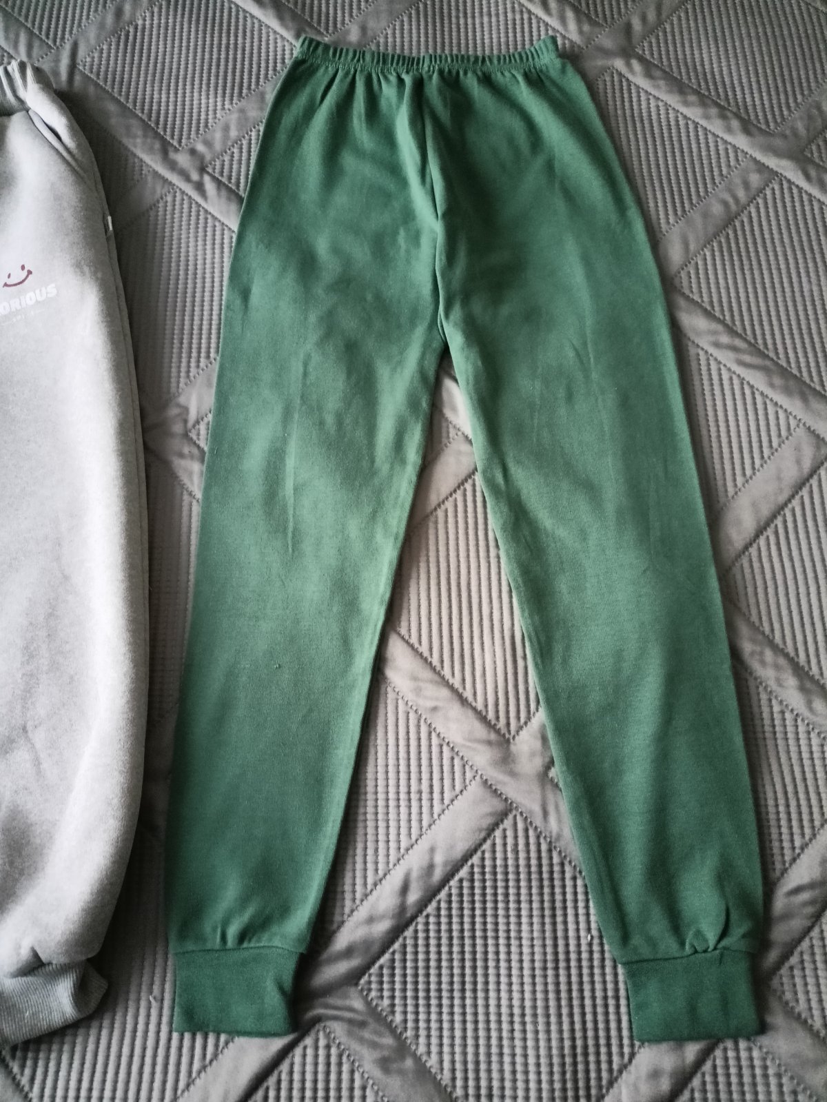 Zelené kalhoty vhodné na tělocvik, na doma, na spaní jako pyžamové.